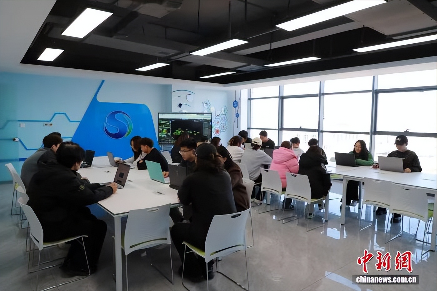图为内蒙古算力与人工智能产教融合基地实训室的学习场景。施少宇 摄