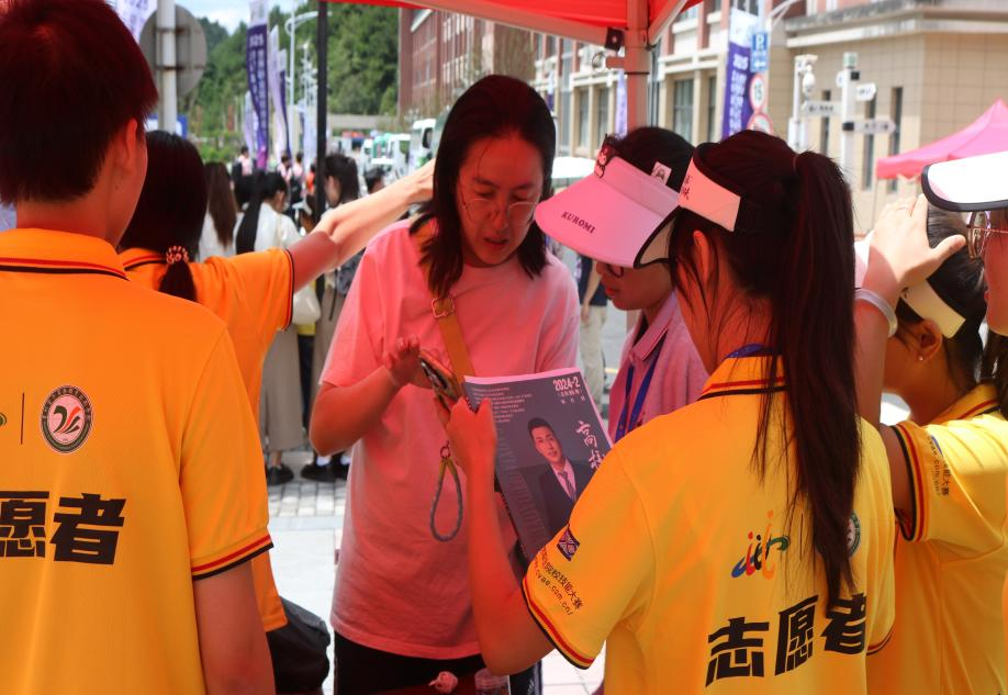 志愿者在服务点为参赛人员提供咨询解答、路线指引等服务