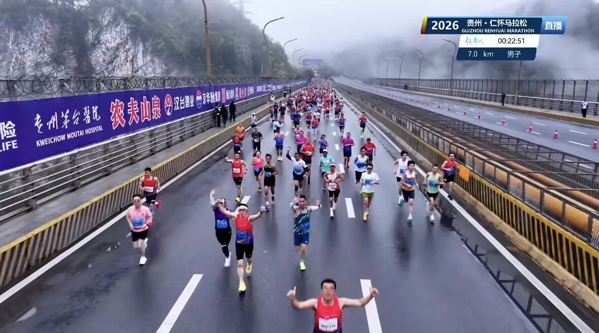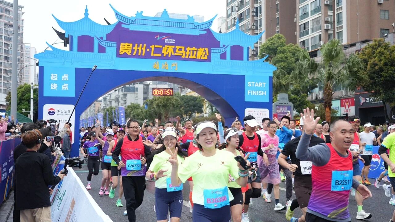 3月22日,2026贵州·仁怀马拉松在仁怀市酒都·方圆荟购物广场鸣笛开跑,来自全国各地上万名选手在赛道上尽情挥洒汗水,享受运动带来的激情与快乐。