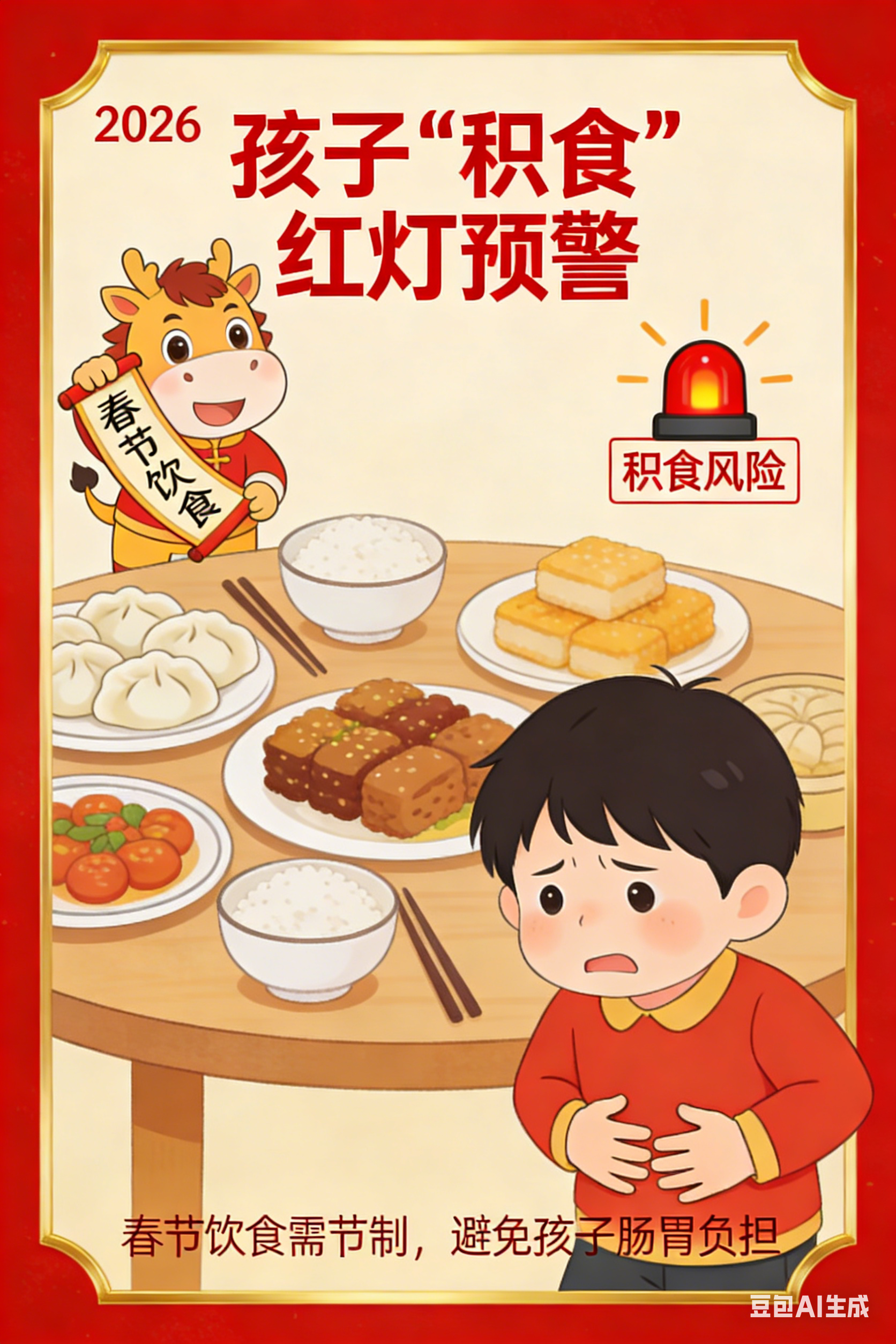 各位家长,过年美食琳琅满目,孩子最容易吃多、吃杂,导致“积食”。如果孩子出现口气重、舌苔厚腻、肚子胀、晚上睡不踏实,甚至突然发烧,可能就是积食信号。春节期间,请给孩子饮食定时定量,避免连续大鱼大肉,多吃些山楂、白萝卜等助消化的食物。饭后适当活动,切忌马上睡觉。一旦出现症状,可暂时清淡饮食,必要时及时就医。
