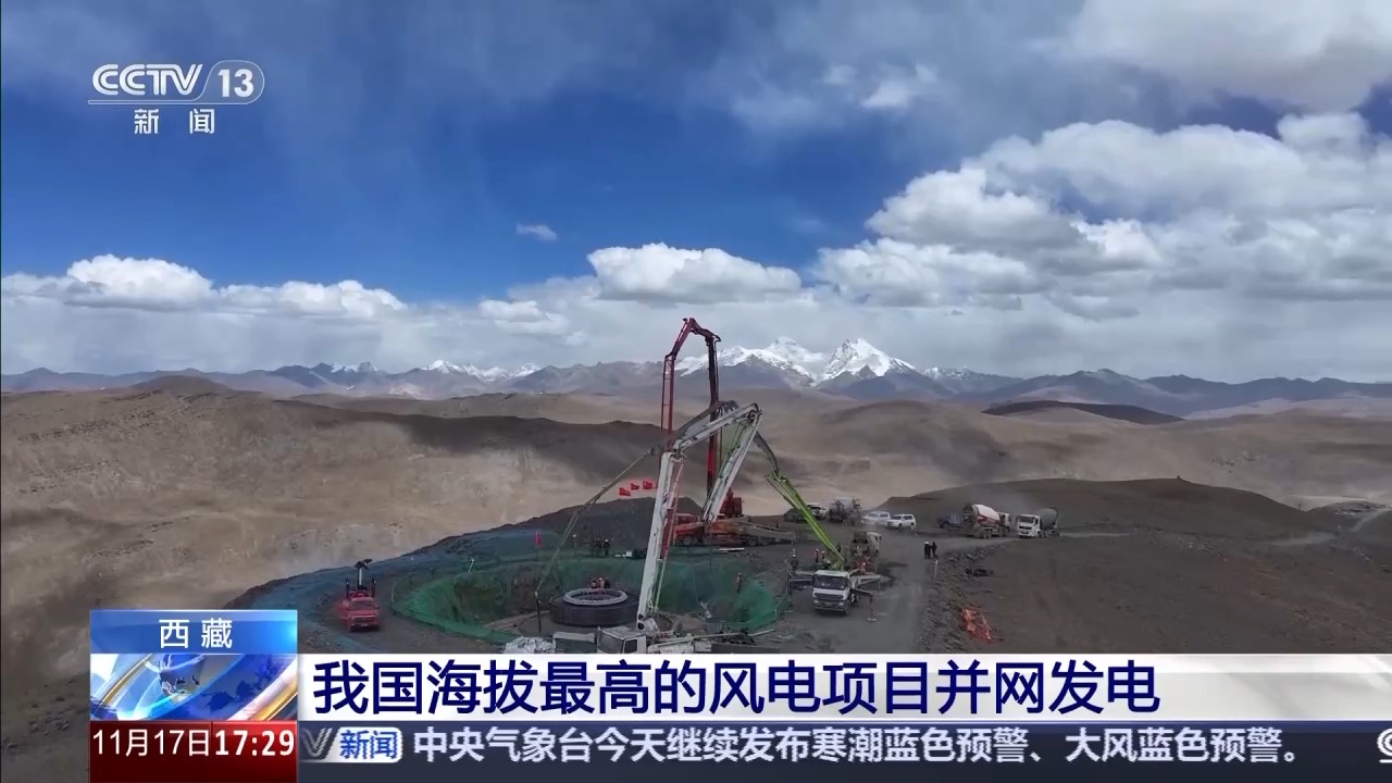 11月17日,记者从中国华电集团获悉,位于西藏山南的琼结风电项目正式并网发电。项目风机点位最高海拔5370米,投产后成为我国在运行的海拔最高风电场。