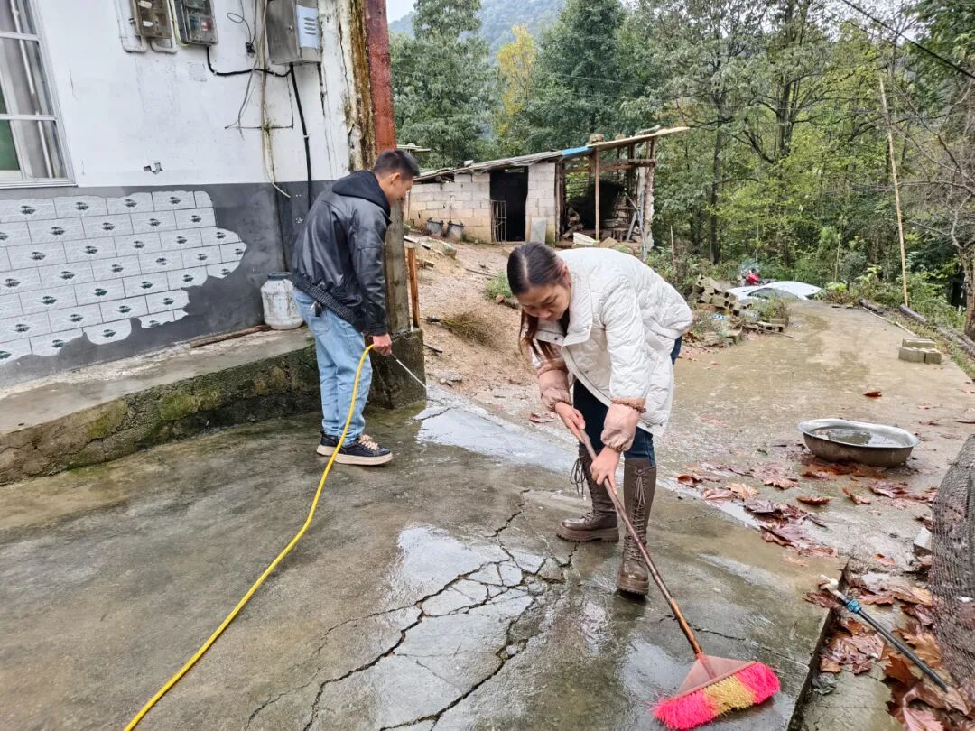 “高伯伯,你看这院坝收拾出来,是不是亮堂多了?以后在这儿晒太阳也舒心。”在赶子村特困人员高开文家中,村干部和党员志愿者一边麻利地清理堆积的杂物和落叶,一边与其亲切交谈。原本略显杂乱、落叶堆积的院坝,在大家齐心协力下,很快变得整洁有序、宽敞明亮。高开文看着焕然一新的院子,脸上露出了久违的笑容,连声道谢:“真是太感谢你们了,我身体经常生病,腿脚也不方便,这院子好久没这么干净了。”