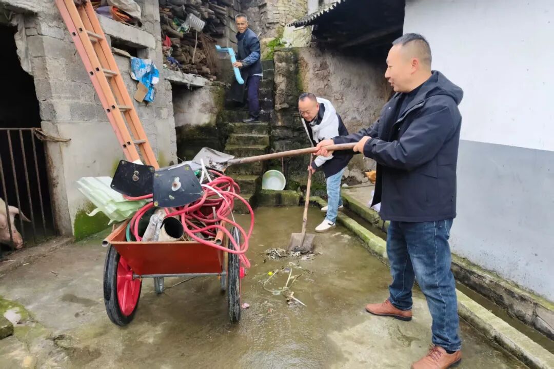 像高开文家这样的场景,近日在温泉镇多个特殊困难群众家中同步呈现。此次专项行动,是温泉镇深入推进“两清两改两治理”工作的具体实践。活动中,由村干部、驻村工作队、党员志愿者组成的服务小队,分工明确,干劲十足。他们手持扫帚、铁锹、抹布等工具,帮助困难群众清理房前屋后、院坝内的垃圾杂物,疏通排水沟渠,对卫生死角进行重点清扫。同时,村干部和党员志愿者还积极向群众宣传人居环境整治的重要性,引导他们养成讲卫生、爱清洁的好习惯,鼓励他们树立信心,以积极向上的精神面貌创造更加美好的生活。