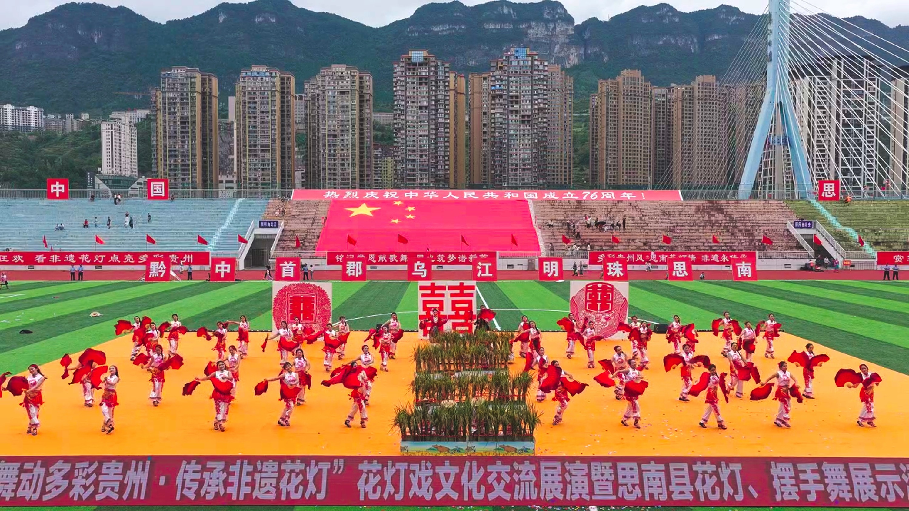 10月1日,正值国庆佳节,多彩贵州大地上,铜仁市思南县举办2025年多彩贵州“大地之声”系列活动—“舞动多彩贵州·传承非遗花灯”展演暨花灯、摆手舞展示活动。当国庆邂逅非遗,思南万人齐聚同欢乐,奏响文旅发展新篇,庆祝中华人民共和国成立76周年。