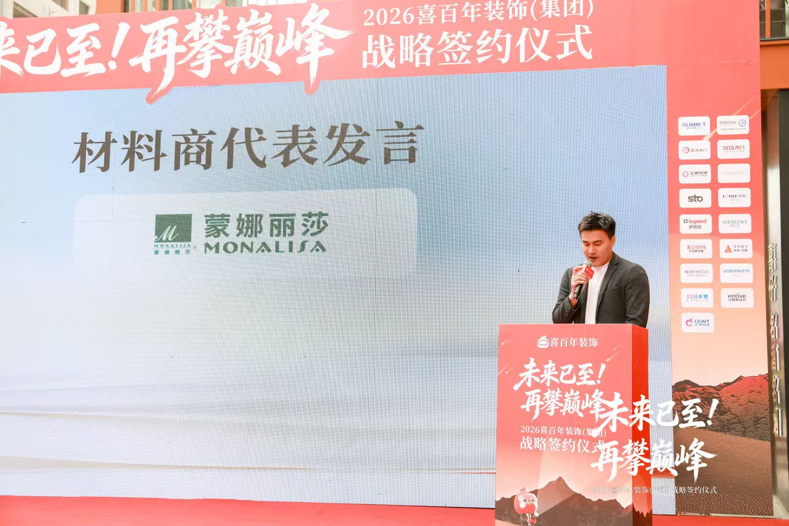 参与此次签约仪式的品牌不仅数量多,覆盖面广,都是来自世界各地的知名品牌。这不仅仅是一场签约仪式,“坚守品质,初心不改;严选材料,匠心所在;环保先行”也不仅仅是一句口号,更是喜百年与各位供应链伙伴共同许下的庄重承诺——把不花冤枉钱的好装修,带给更多家庭的坚定决心