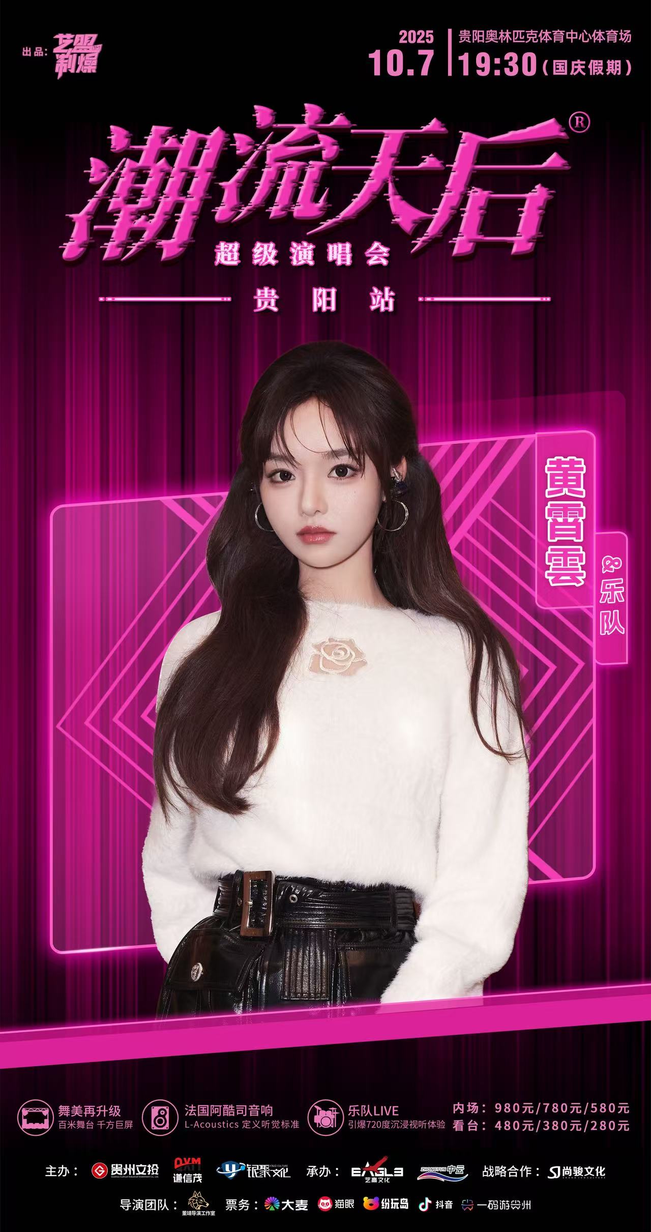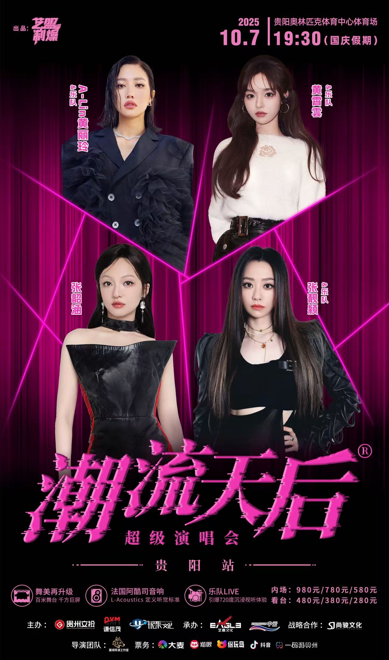 准备好你的热情和尖叫与张靓颖、张韶涵、黄丽玲(A-Lin)、黄霄雲一起,在贵阳的夜空下,引爆属于2025年的最强音乐宇宙!