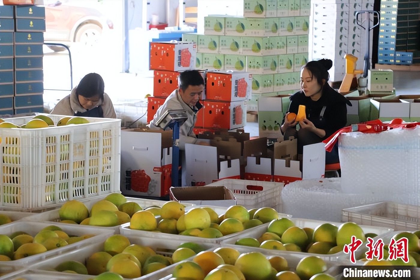 初冬时节,走进江西省赣州市南康区赣南稀柚智慧农场,漫山遍野的果树挂满了沉甸甸、金灿灿的柚果。柚农们穿梭于果树间忙着采摘、打包、搬运稀柚,一派喜人的丰收景象。