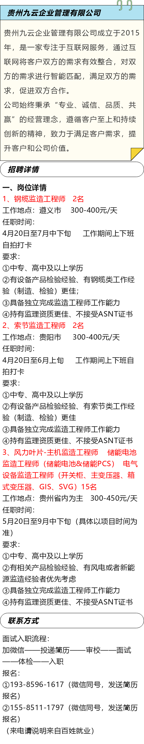 招聘监造工程师!月综合薪资7000—10000元!300-450元/天!