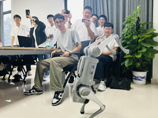 研学第三站,同学们探访了南方科技大学。大家不仅了解到南科大聚焦前沿交叉学科的办学特色、“631”综合评价录取模式及其独特的教学模式,还集中学习人工智能与无人集群系统的相关知识。在工学实验室,同学们饶有兴致地与机器狗互动,尝试操控其完成倒立、拜年、跳跃等动作。随后,在老师指导下进行机械臂组装实践,激发了同学们对机械工程领域的兴趣。