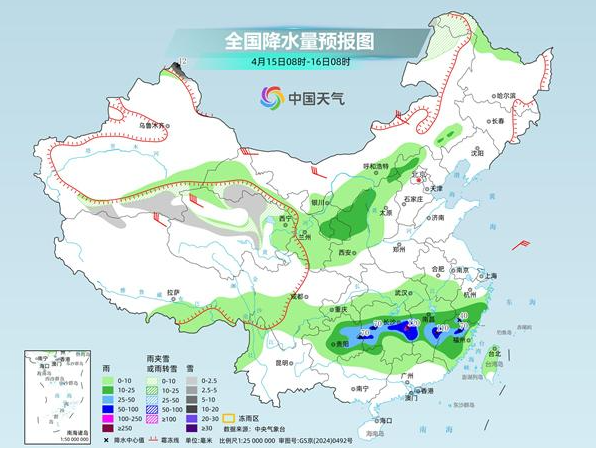 明天,新疆伊犁河谷和南疆西部山区、内蒙古东北部等地部分地区有小雪或雨夹雪,其中,新疆北疆阿勒泰山区部分地区有中到大雪,局地暴雪。江淮南部、江南东部和南部、四川南部、贵州西北部、广西西部和中北部、广东北部以及内蒙古东南部、河北北部等地部分地区有中到大雨,其中,江西中部、浙江西南部、福建西北部、广西西南部和东北部等地部分地区有暴雨,局地大暴雨。