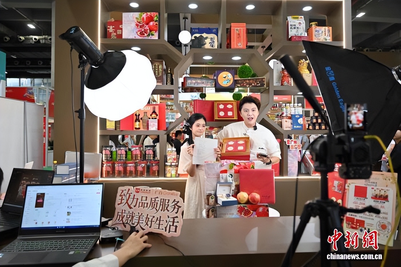 广东优品展商家现场直播。中新网记者 陈楚红 摄