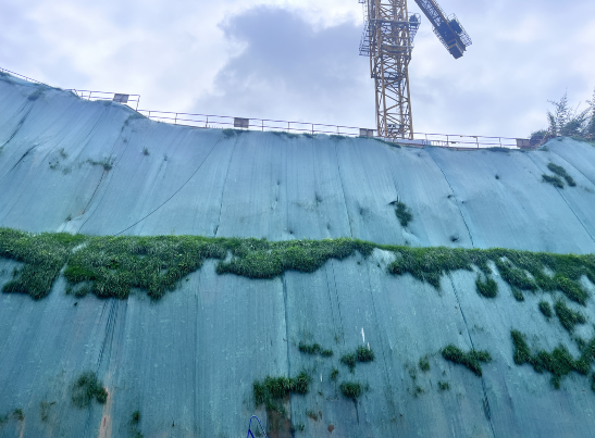 创新应用“三维散热+智能监测”技术,在攻克主墩承台超大体积混凝土施工难题的同时,有效降低温控能耗。同步实施桥台边坡生态防护,通过喷播植草、植生袋等工艺,有效减少开挖后水土流失。作业期间不间断洒水喷淋、定时冲洗施工道路,扬尘抑制率达98%。