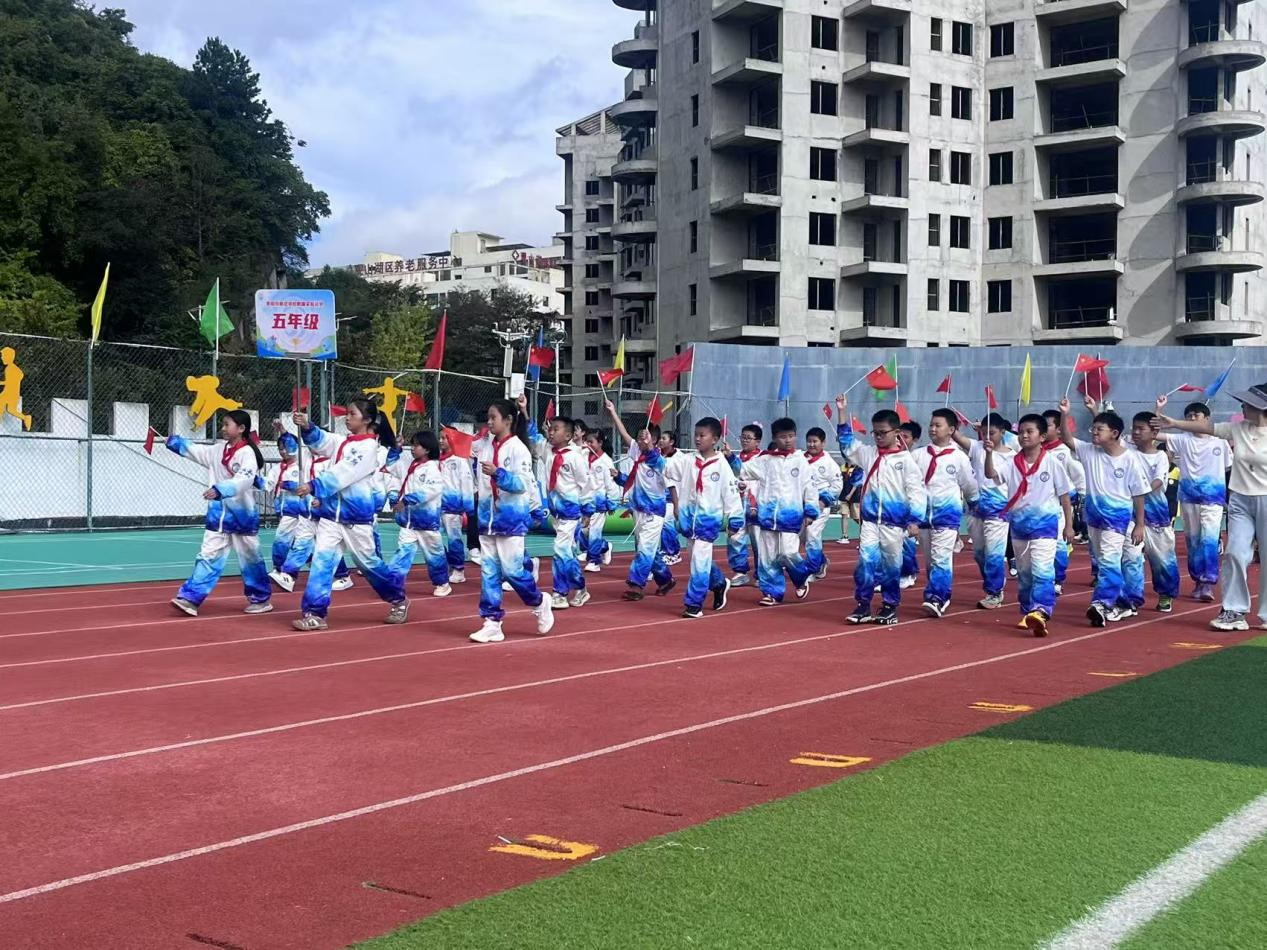在热烈的气氛中,学校党总支书记毛国洪郑重宣布:“贵阳市师范学校附属实验小学第二十届运动会,开幕!”全场掌声雷动,将开幕式推向高潮。