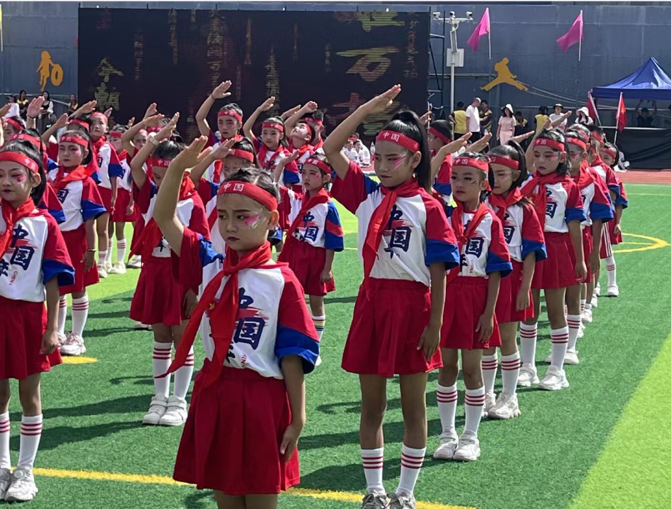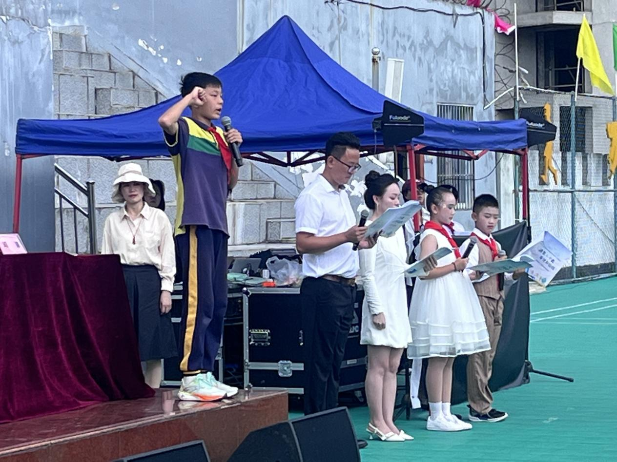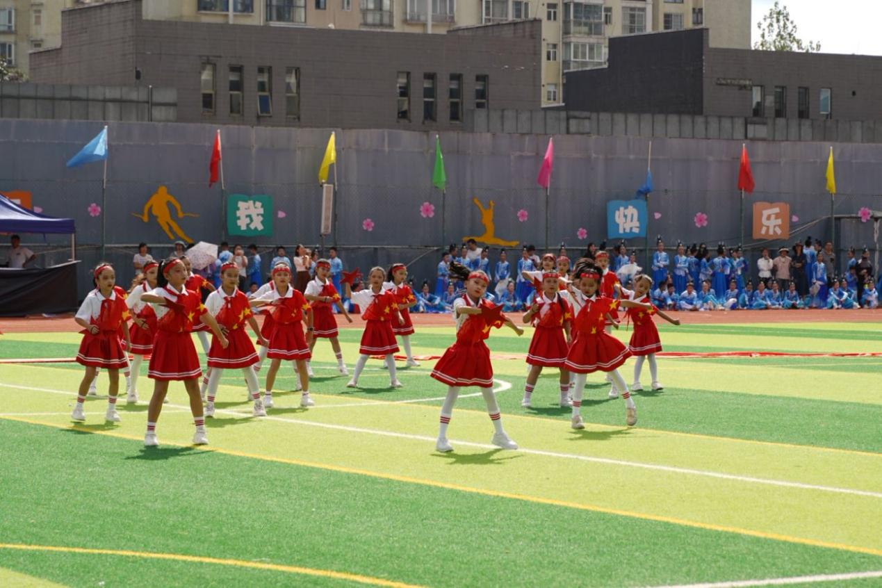 三年级通过“红领巾·根脉情”的演绎,表达了薪火相传、向阳而生的信念。