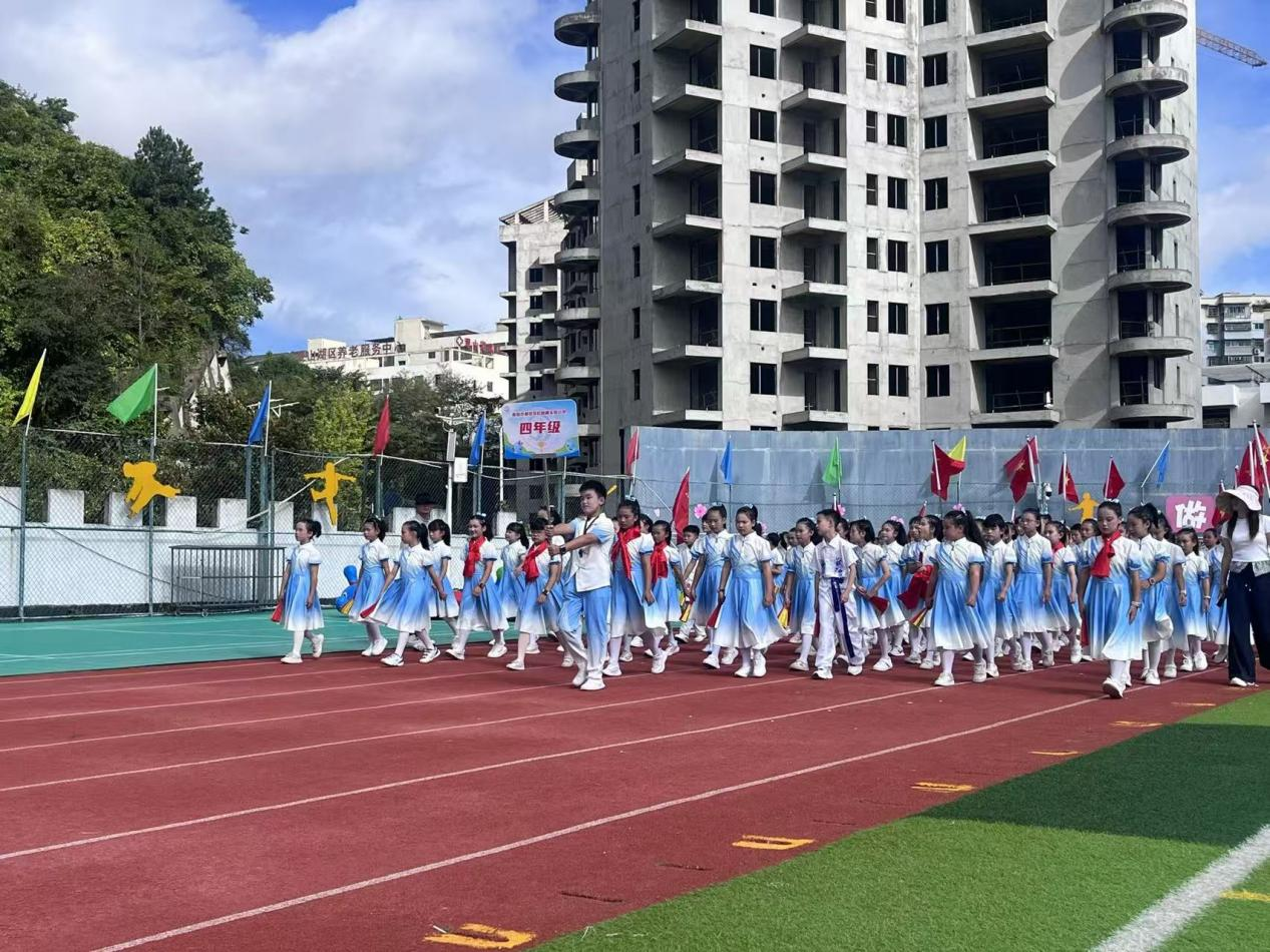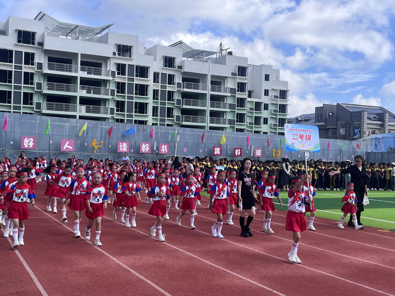 随后,各年级运动员方阵依次走过主席台。六年级方阵作为母校二十载岁月的见证者,意气风发;五年级方阵如雏鹰展翅,充满朝气;四年级方阵以昂扬姿态展现新时代少先队员风采;三年级的同学们如活力满满的小太阳;二年级的小小运动员如初升朝阳,稚嫩而自信;一年级的孩子们则如清澈的“源头活水”,踏出了学习之旅的第一步。
