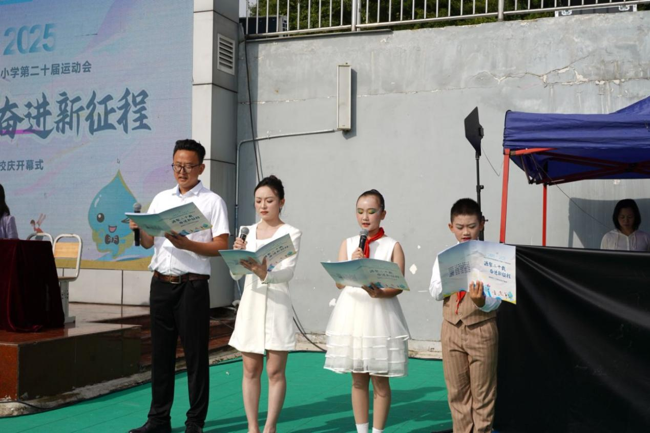 庄严的升旗仪式后,贵阳市师范学校附属实验小学校长龙腾为开幕式致辞。他深情回顾了学校二十年风雨兼程的奋斗历程,强调学校始终秉持“小水滴涓流入海”的育人理念,以“源文化”滋养每一名学子成长。他展望未来,勉励全体师生凝聚“源聚”之力,在新时代的征程上续写辉煌。