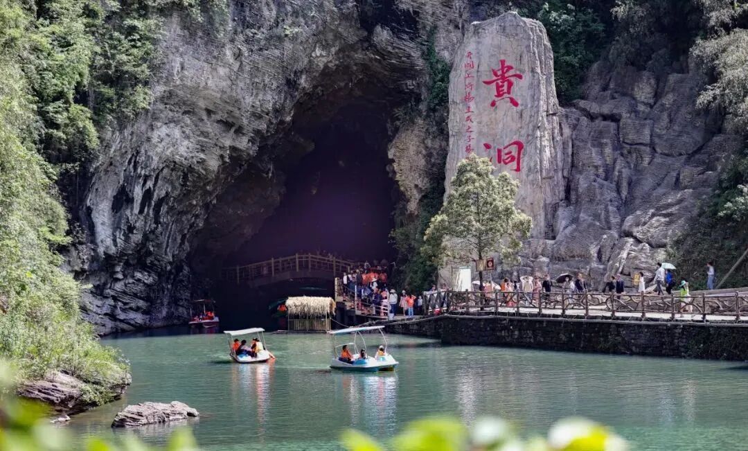贵洞全长约4公里,流泉、竹韵、洞内奇景千姿百态。天然形成的独特钟乳石、溶沟、窝穴和地下河流,在灯光的映射之下五彩斑斓,景色相连、步步有景。