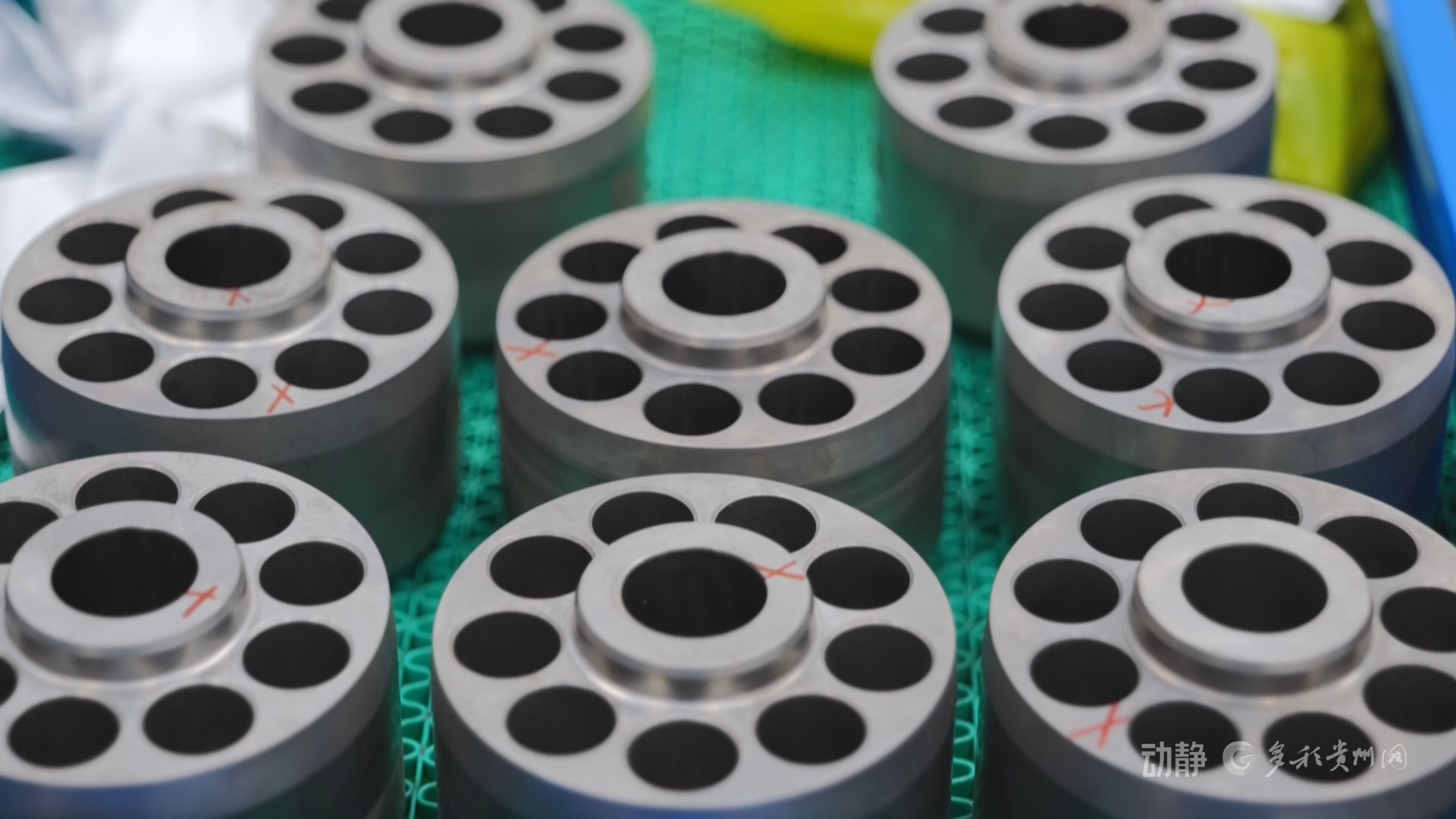 在贵阳综保区的贵州鼎成熔鑫科技有限公司,工人正在对即将出口欧洲的柱塞泵零部件进行检测。
