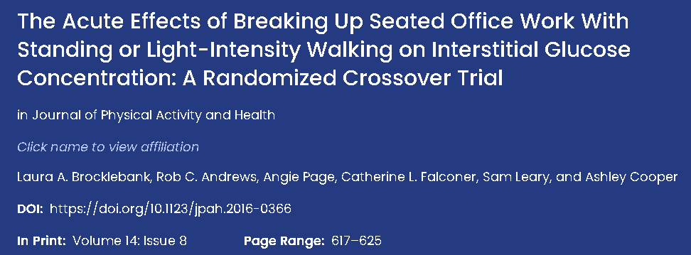 另一项发表在《糖尿病护理》上的研究更有说服力:每坐30分钟站起来5分钟,能让餐后血糖上升幅度降低34%,同时胰岛素浓度下降20%,更关键的是,这种稳糖效果还能持续到第二天!