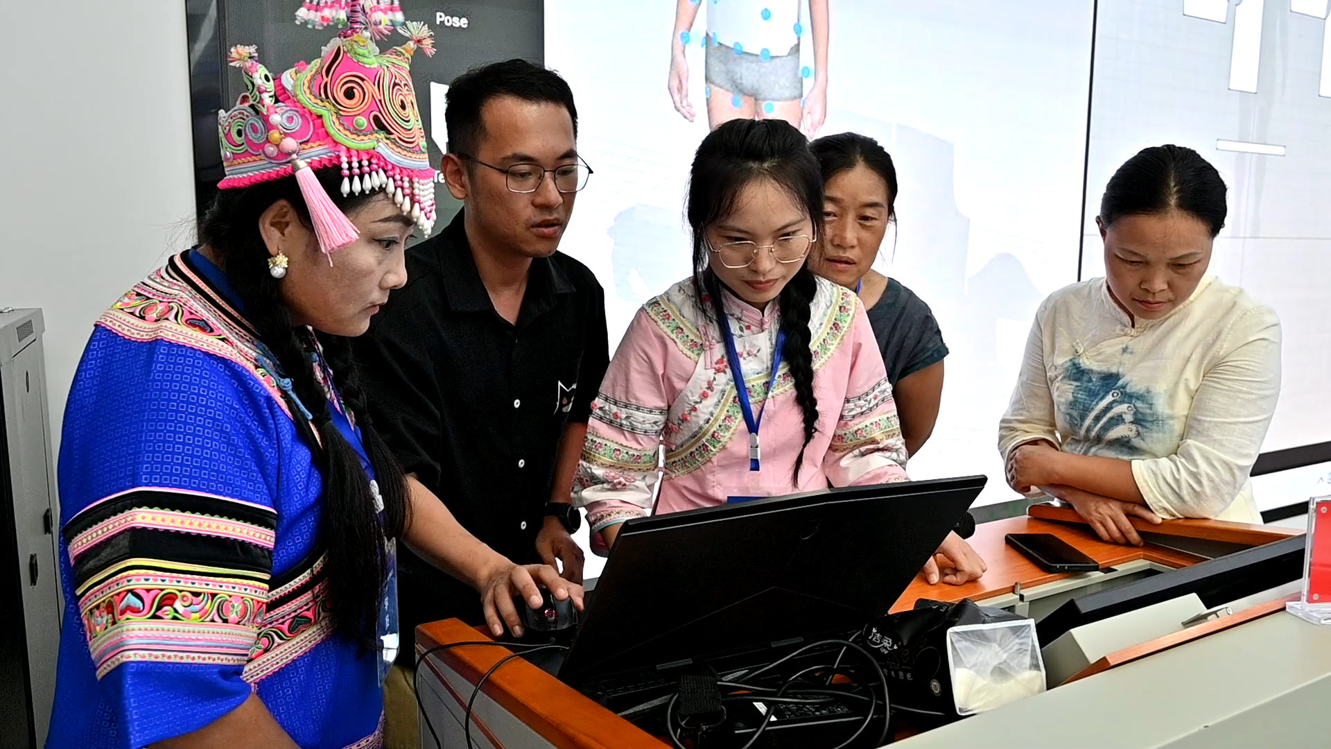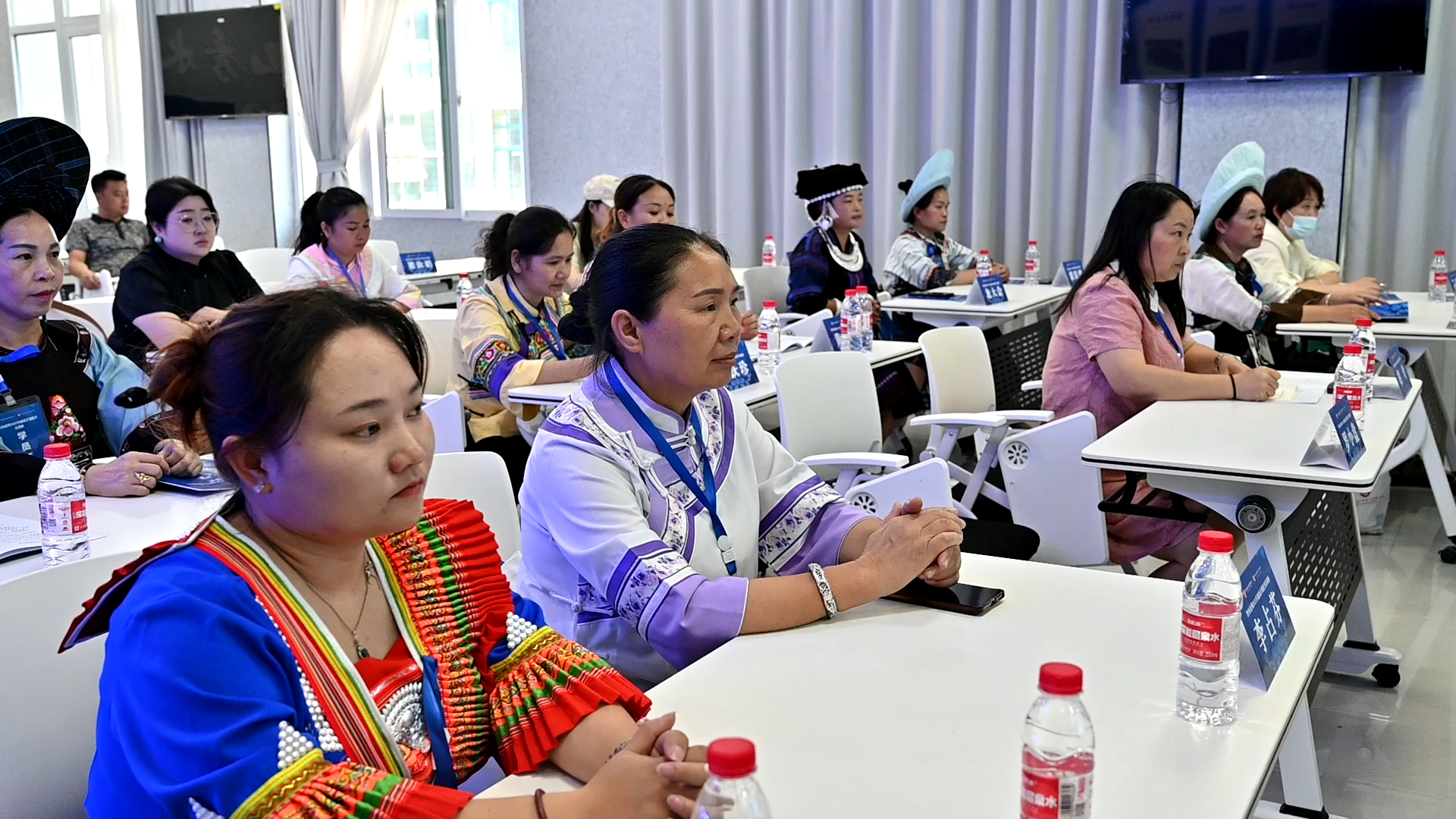 在培训课堂上,来自惠州的讲师正在用数字技术为现场学员讲解展示如何设计民族服饰样式、贴片、花纹,如何调整设计各项技术等,并用数字模型展示设计的服饰,学员们目不转睛地盯着屏幕,或记笔记,或手机录像,不断学习设计领域的先进知识。大家纷纷表示,不仅要学以致用,还要用这些知识带领身边更多的妇女姐妹参与到锦绣民族手工产业中来,共同打造黔西南州的锦绣民族手工品牌。
