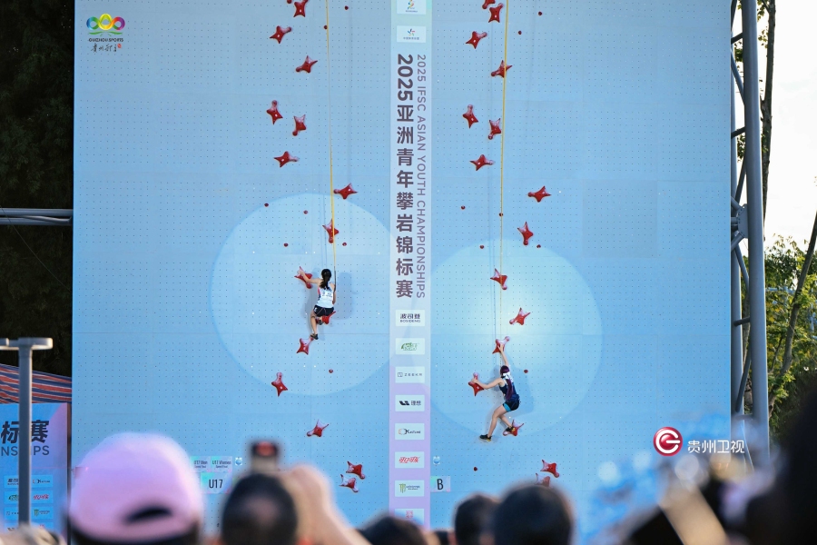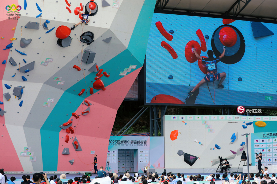 8月20日至24日,2025亚洲青年攀岩锦标赛在贵阳举办。14个国家和地区的青年健儿角逐难度、速度和攀石三大项目,释放这项运动的激情、力量与美感。