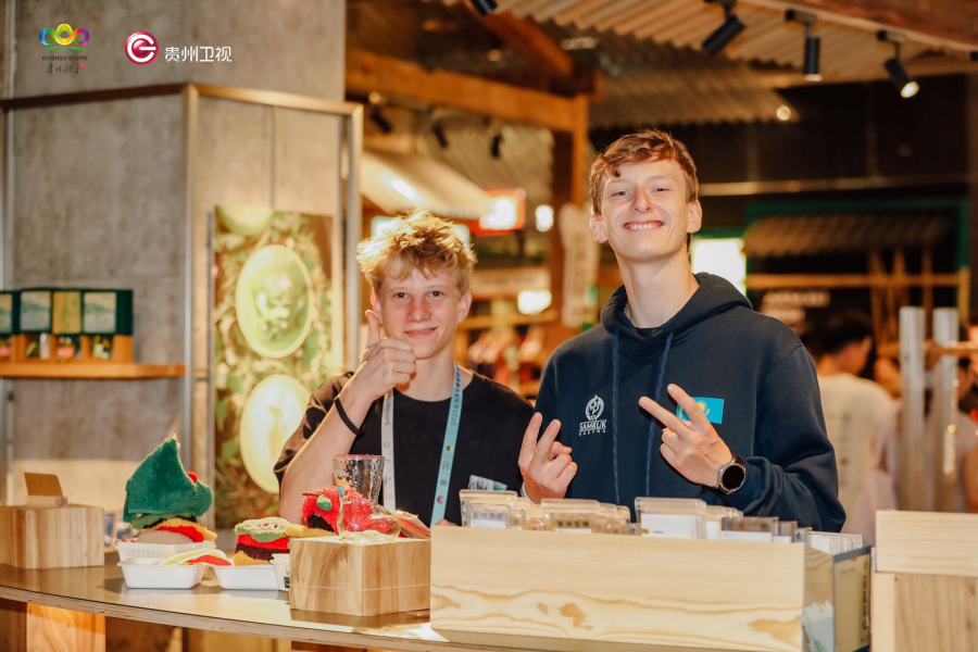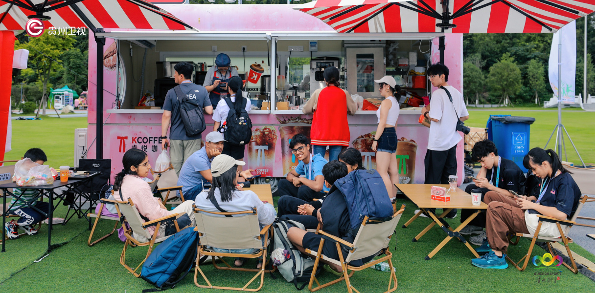 沈高彬带来了贵州绿色元素满满的刺梨、抹茶精酿;张曼玲耐心研磨咖啡,期待体育带来的人气,能把贵阳咖啡推向世界;苗亚明沏上贵州茶,欢迎各地的游客和选手,他认为运动和茶的共同主题是“健康”……