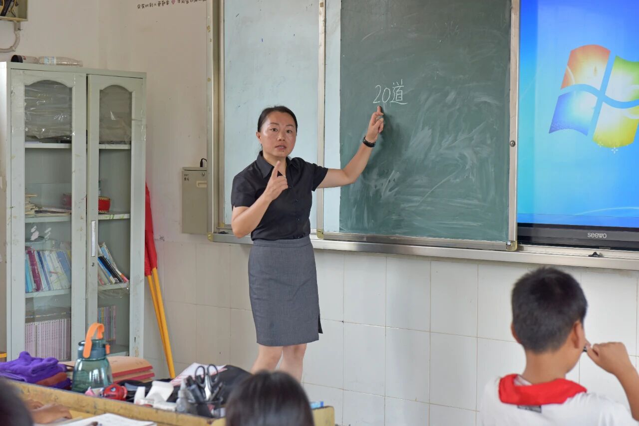 图为泥凼镇中心小学副校长胡显静给学生上数学课