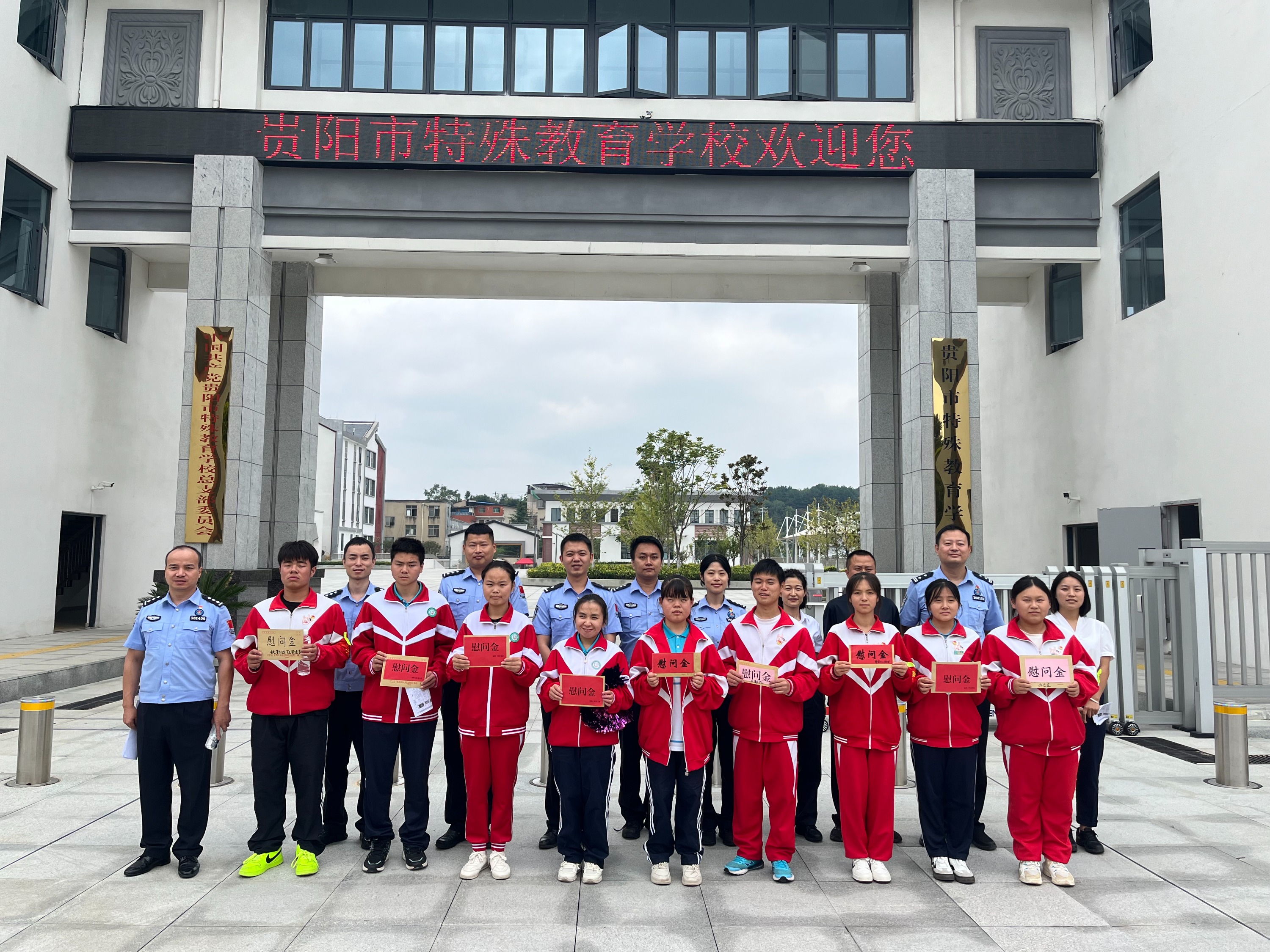 9月27日上午,在中华人民共和国成立75周年之际,贵州出入境边防检查总站开展走访慰问困难群众活动,组织所属10个党支部民警代表前往贵阳市特殊教育学校慰问盲聋哑困难儿童,为他们送去爱心助学金,带去了党和组织的温暖。