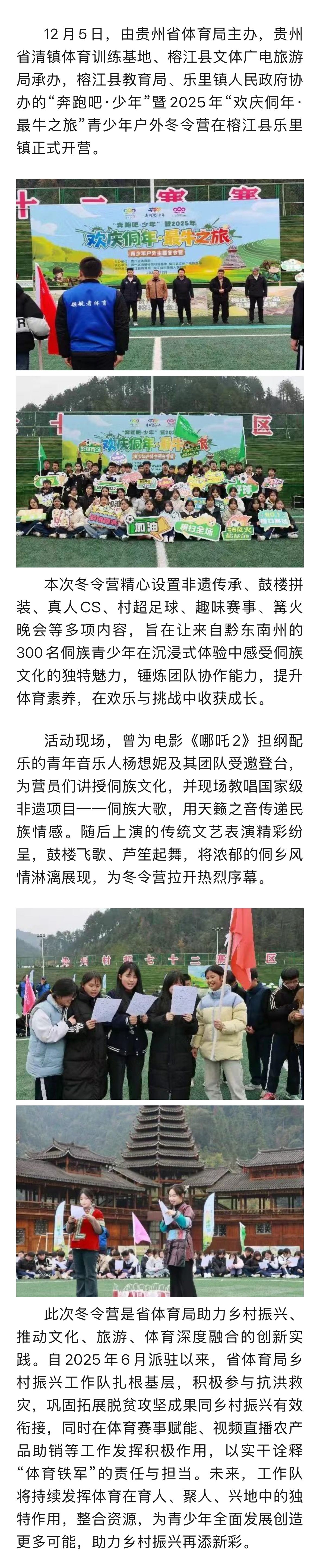 “奔跑吧·少年”暨2025年欢庆侗年·最牛之旅青少年户外主题冬令营在榕江开营