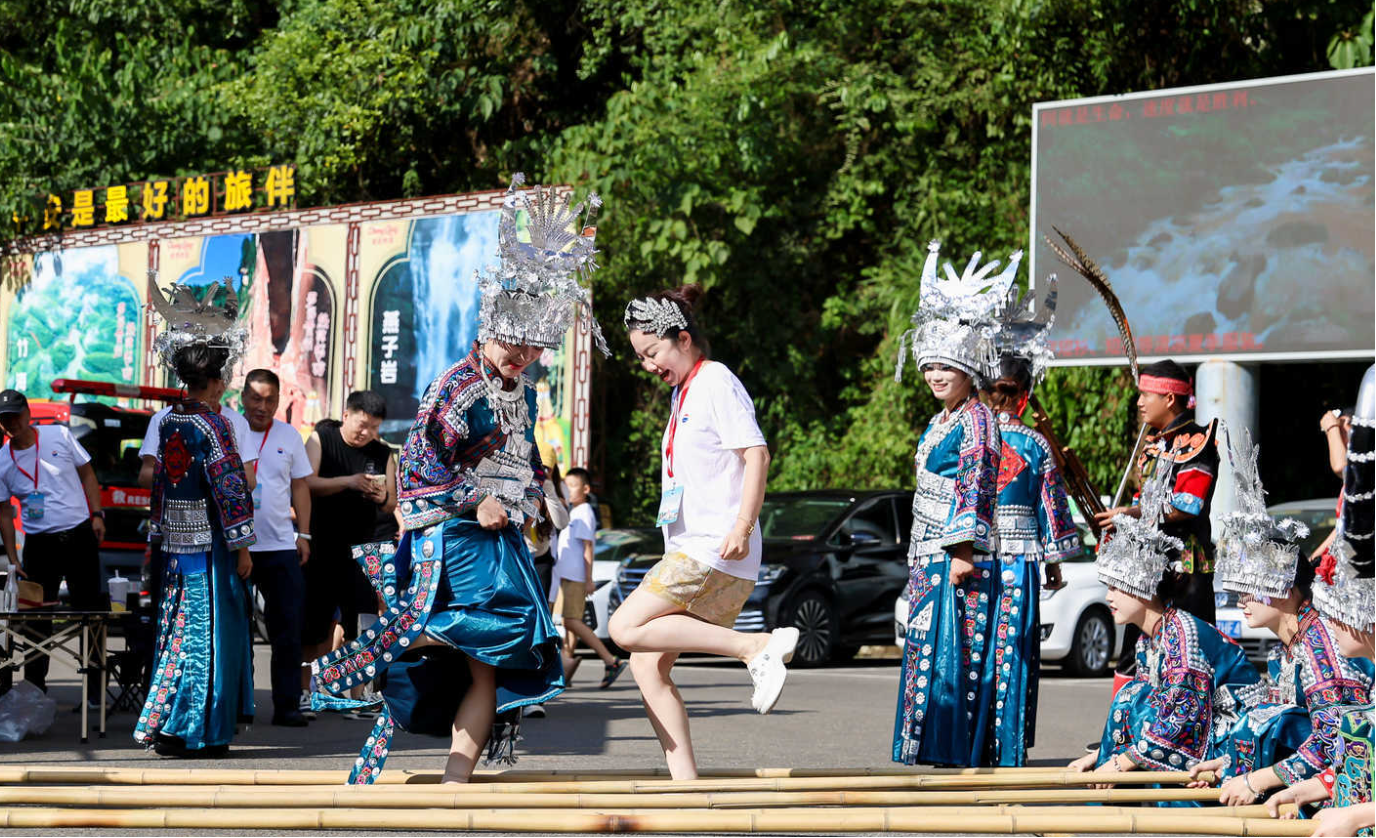 活动伊始,嘉宾们在签到后,通过体验竹竿舞进入非遗市集游览区参观游览,并积极参与游戏互动体验、产品体验等环节,现场氛围热烈而隆重。省级非物质文化遗产赤水竹编传承人、第十四届全国人大代表杨昌芹也莅临现场,并展示非遗竹编技艺,与大家积极互动,现场还展示了赤水当地特色的竹编、竹雕和油纸伞 ,气氛热烈而隆重,大家纷纷为这些精美的手工艺品赞叹。