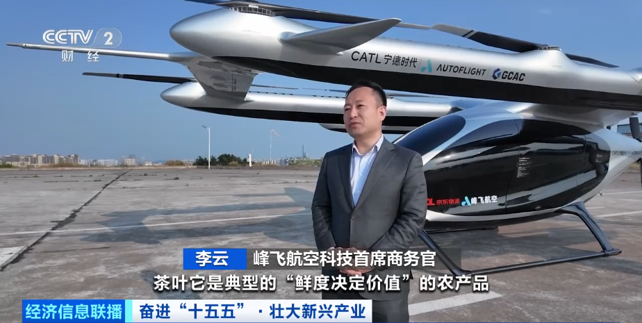 峰飞航空科技首席商务官 李云:茶叶是典型的鲜度决定价值的农产品,吨级电动垂直起降航空器把产地采收、低空转运、地面分拨和全国寄递衔接起来,对茶农和合作社来说,它带来的是更好的议价能力和增收空间。