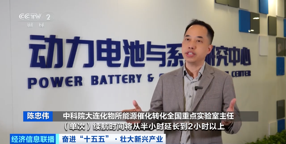 中科院大连化物所能源催化转化全国重点实验室主任 陈忠伟:搭载我们系统的巡检无人机,单次续航时间将从半小时延长到2小时以上,巡检半径超100公里,可覆盖江苏高速任意两个相邻服务区的往返。