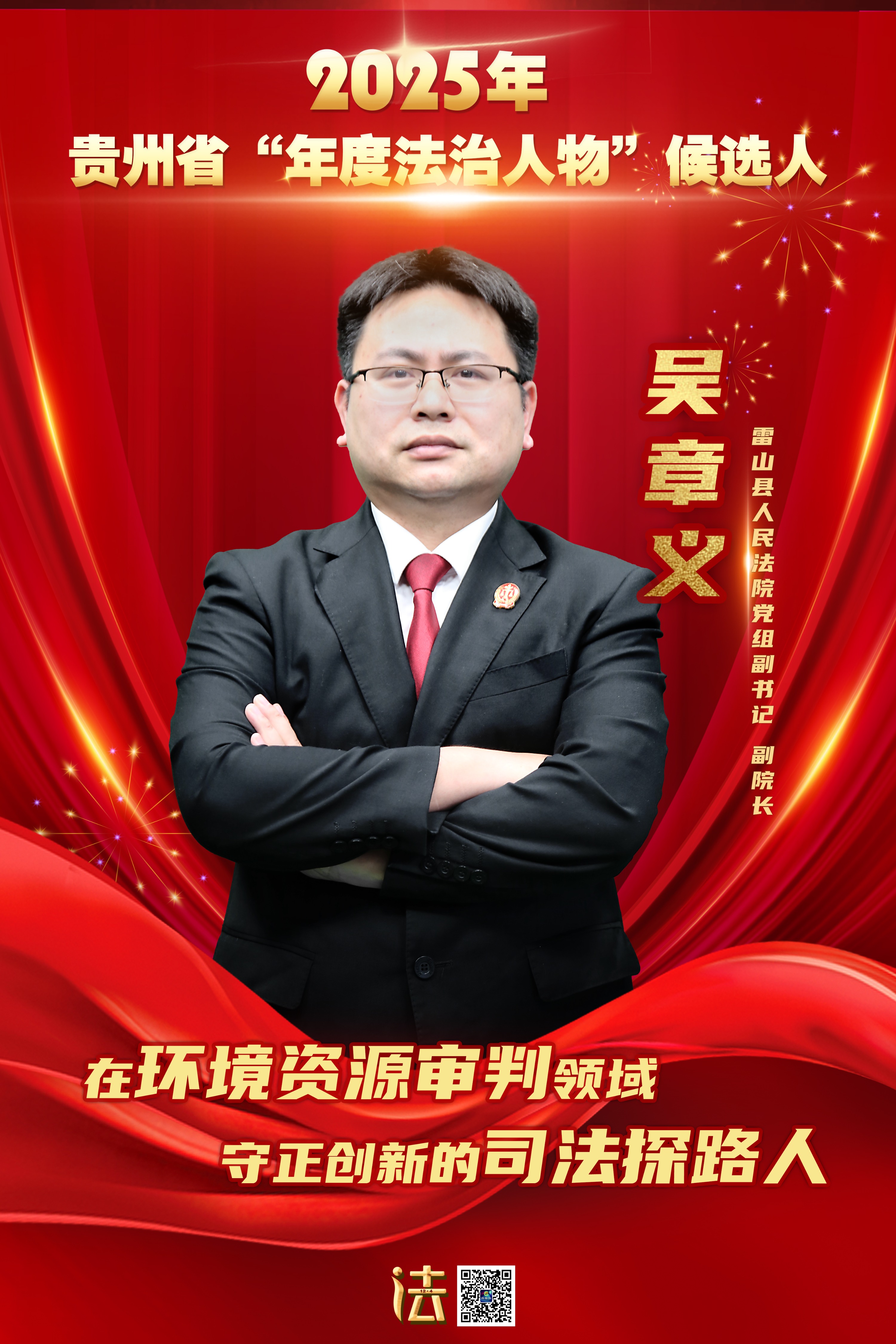 吴章义以坚定的理想信念、深厚的专业功底和无私的奉献精神,在环境资源审判领域开辟了新路径、树立了新标杆,他用司法力量守护着黔东南的绿水青山,用创新实践将“含绿量”转化为“含金量”,展现了一名新时代人民法官的使命担当与司法情怀,为生态文明建设贡献了宝贵的司法智慧。