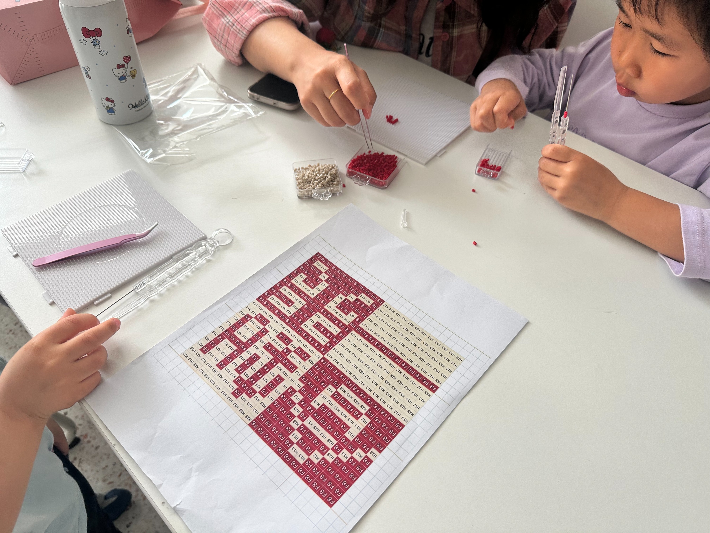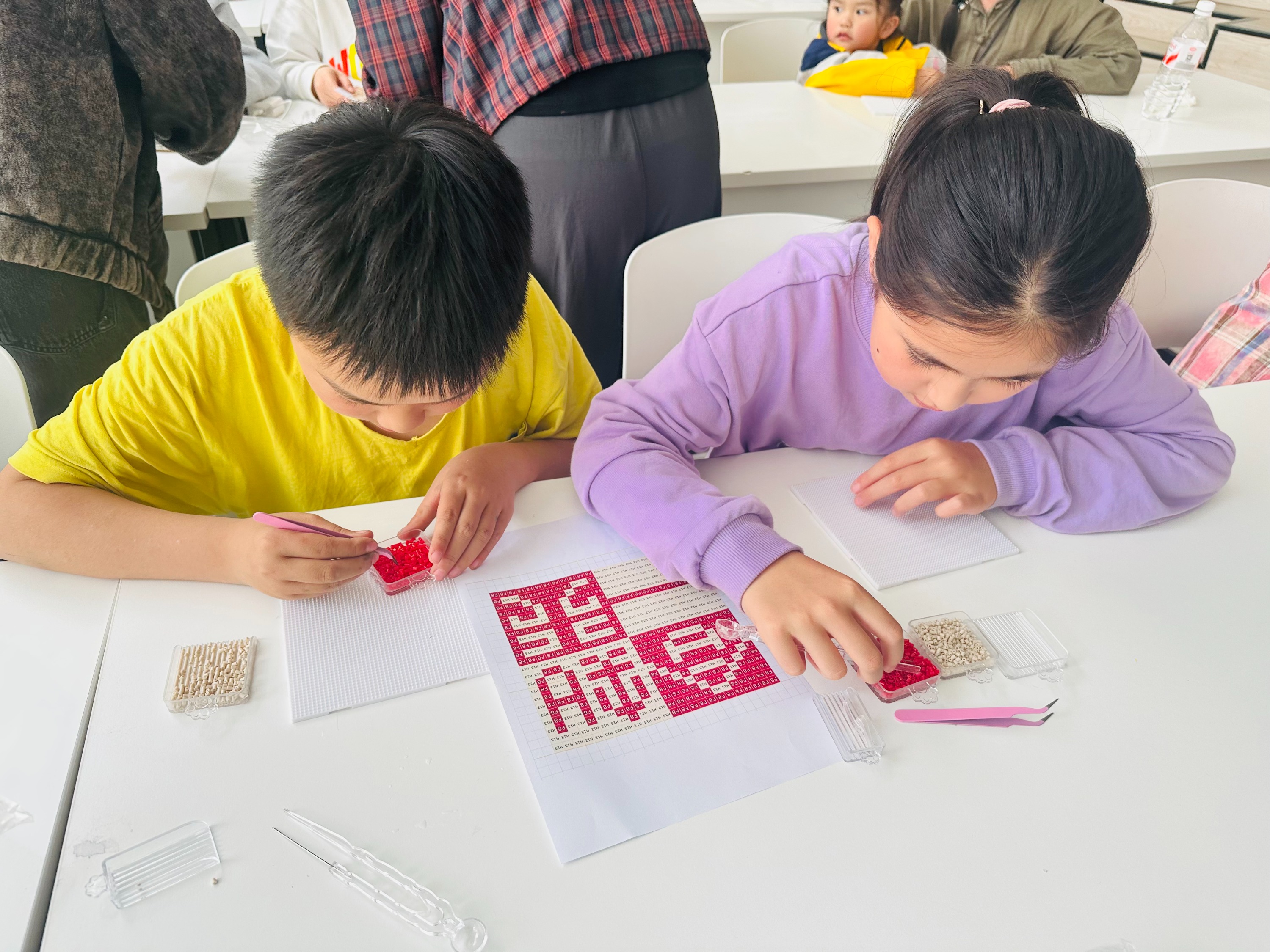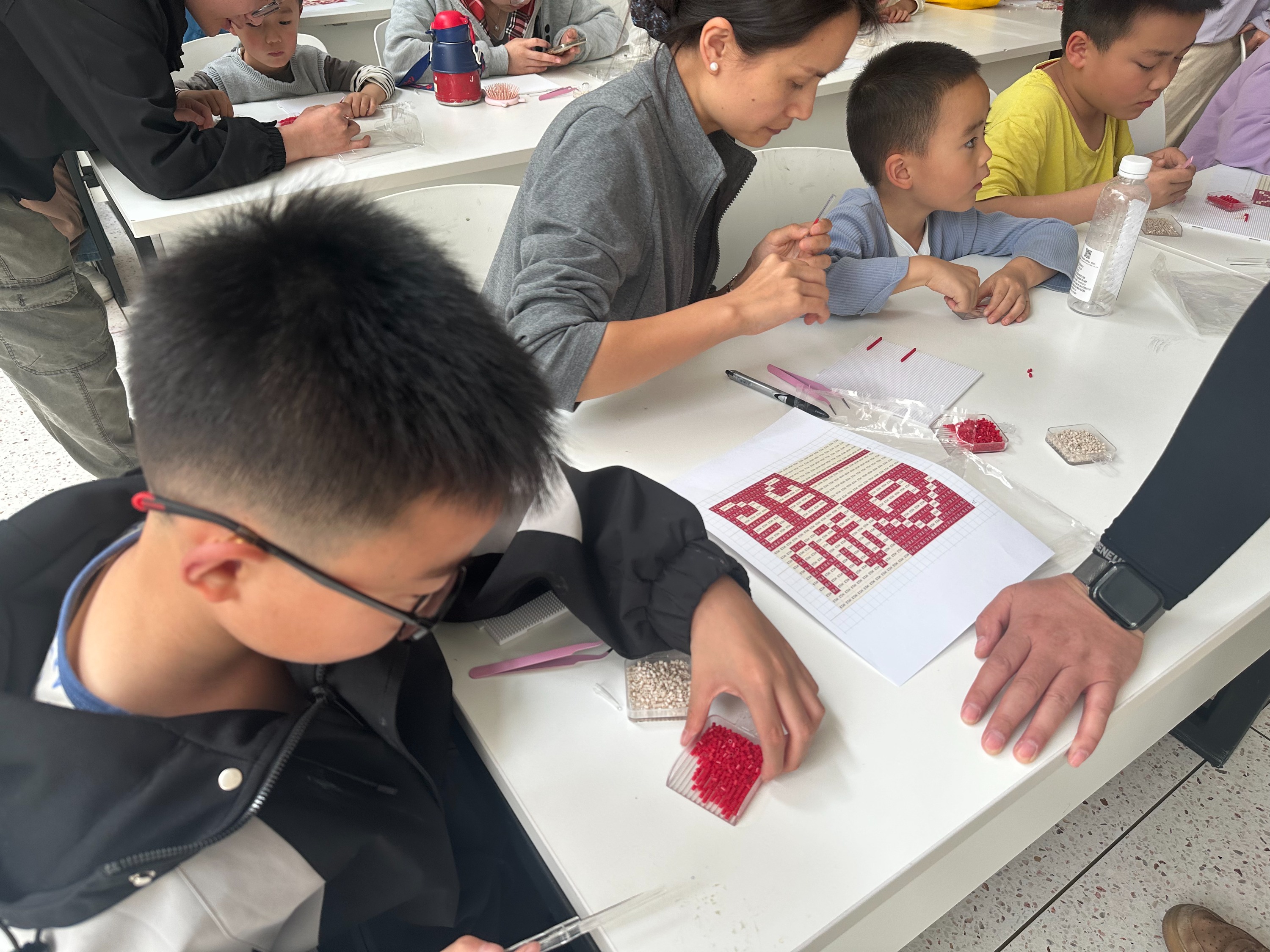 讲座后,拼豆体验正式开始。有人对照图样细心排列,有人发挥创意自由创作。