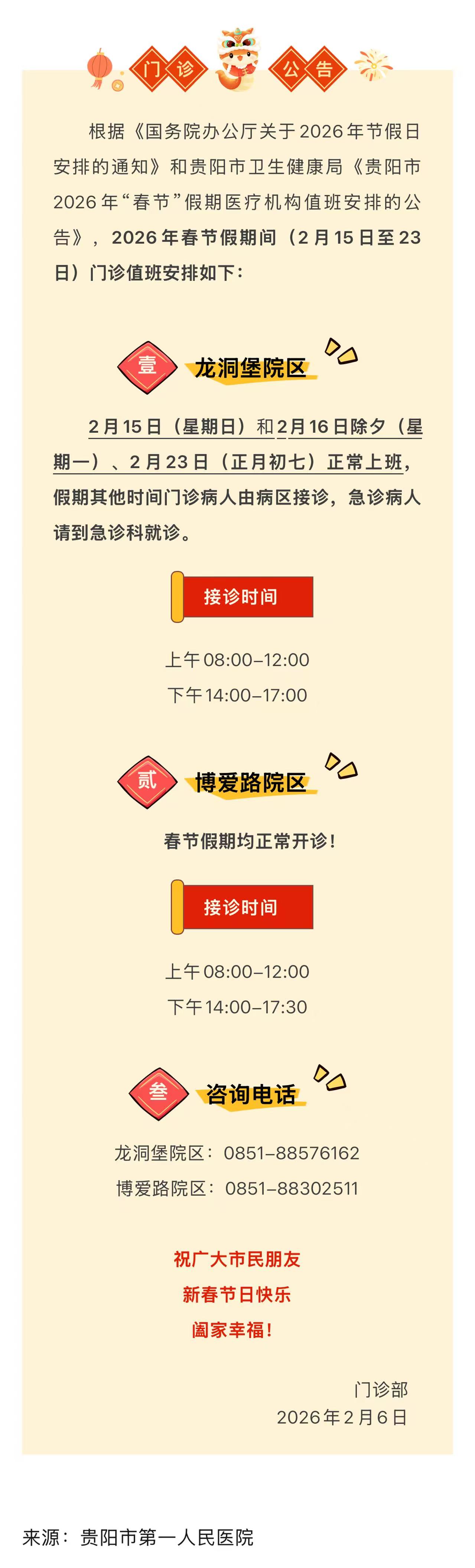 贵阳市第一人民医院2026年“春节”期间门诊应诊公告