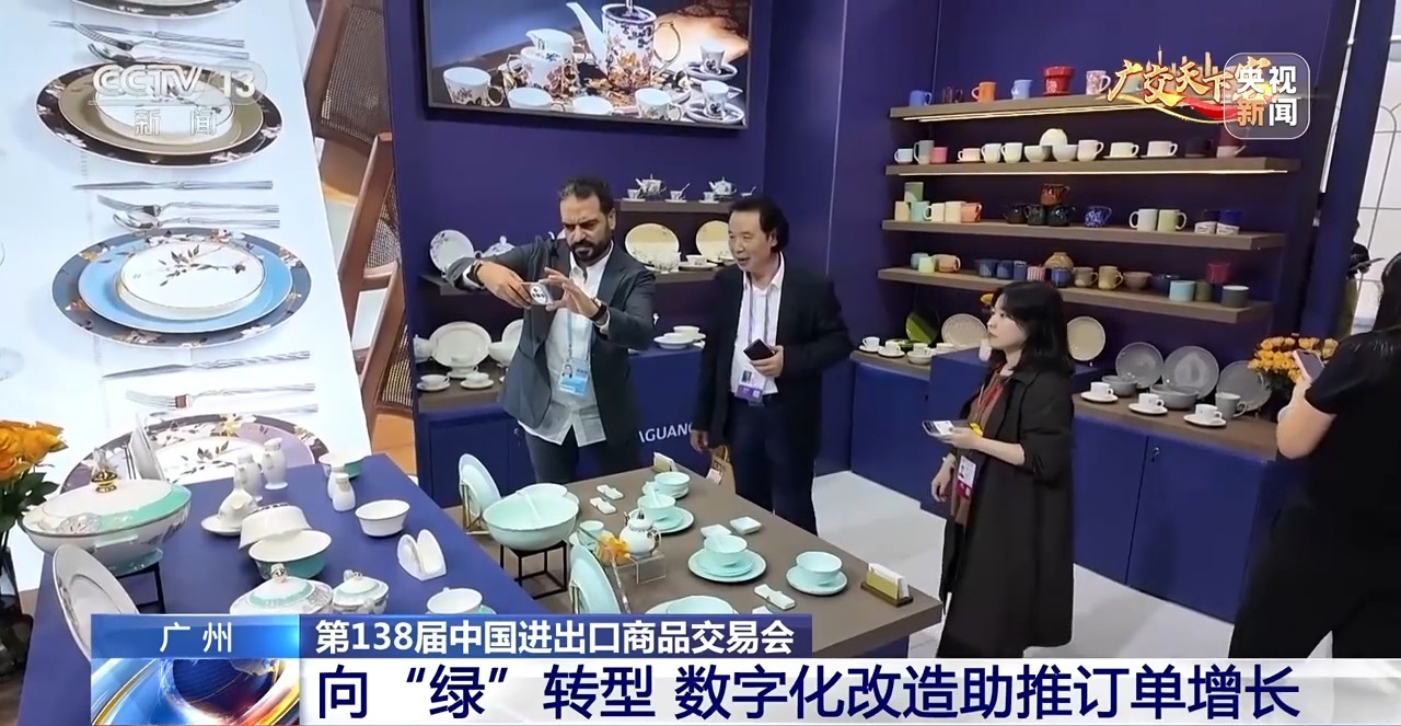 绿色低碳已成为本届广交会的鲜明底色。据统计,展会二期绿色低碳产品数量高达108.3万件,应用绿色生产技术的参展企业占比达38.4%。在这家陶瓷餐具展台,创新的力量同样吸引着众多海外采购商。企业通过全面的数字化改造,在生产线引入3D打印、AI等技术,显著优化了从设计到生产的全流程。