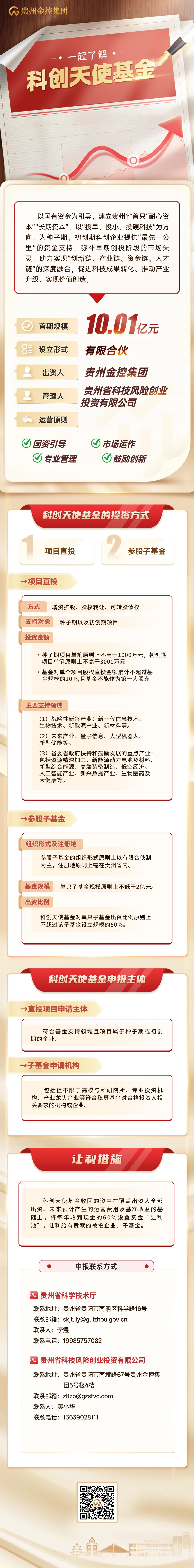 为全面贯彻落实党中央、国务院和贵州省委、省政府重大决策部署,加快构建贵州省企业全生命周期产业引导基金生态链,支持原始创新、技术创新和产业创新,营造创业创新良好环境,促进科技、金融、产业良性循环,助力我省现代化产业体系建设。现面向全社会公开发布《贵州省科技创新天使股权投资基金2025年直投项目申报指南》《贵州省科技创新天使股权投资基金2025年子基金申报指南》,欢迎符合条件的直投项目和子基金申报。