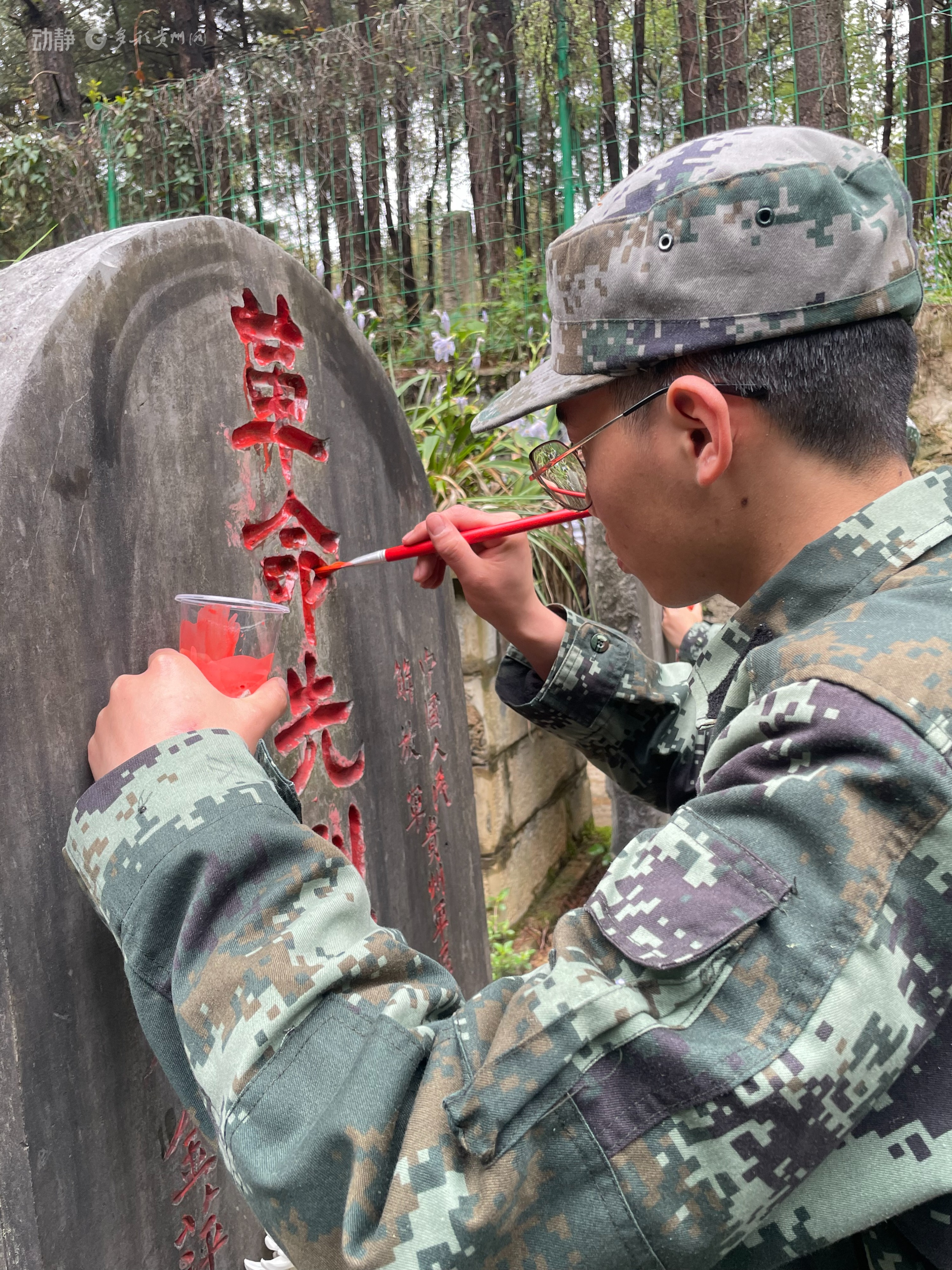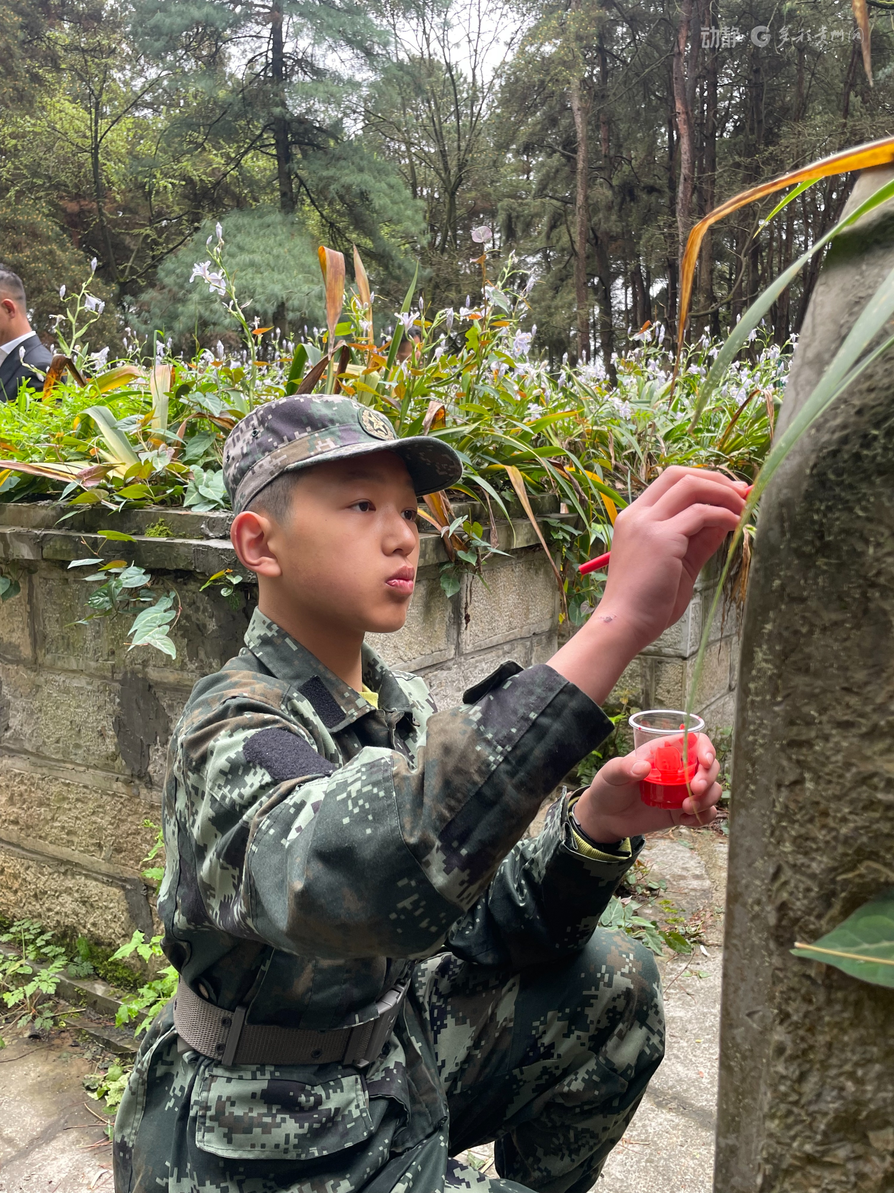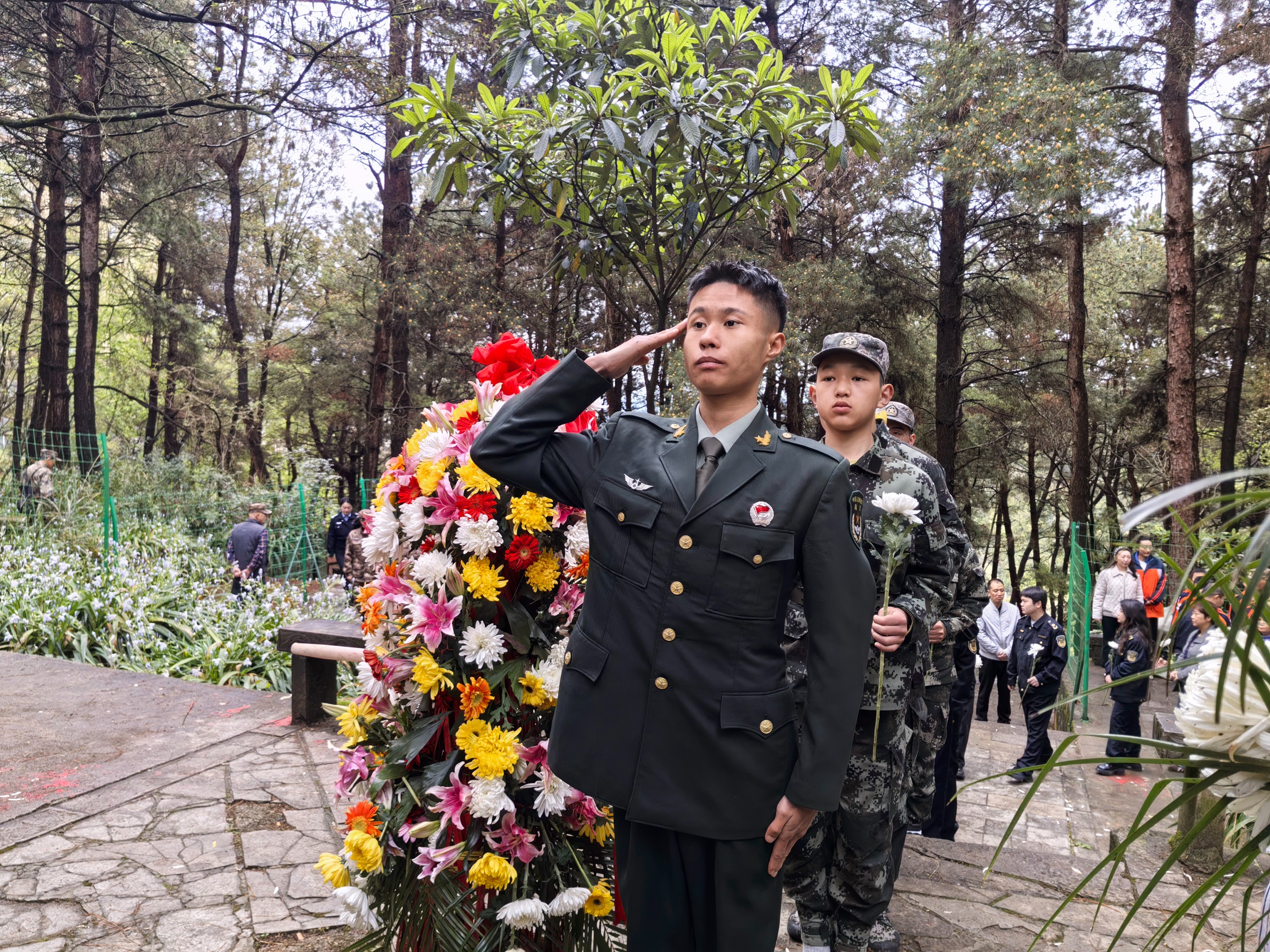 伴随着深情的《献花曲》,礼兵敬献花篮,相关领导缓步上前整理缎带、深情描红。贵阳市英才文武学校校长任刚与学员代表神情肃穆,肃立注目,向烈士致以崇高敬意。