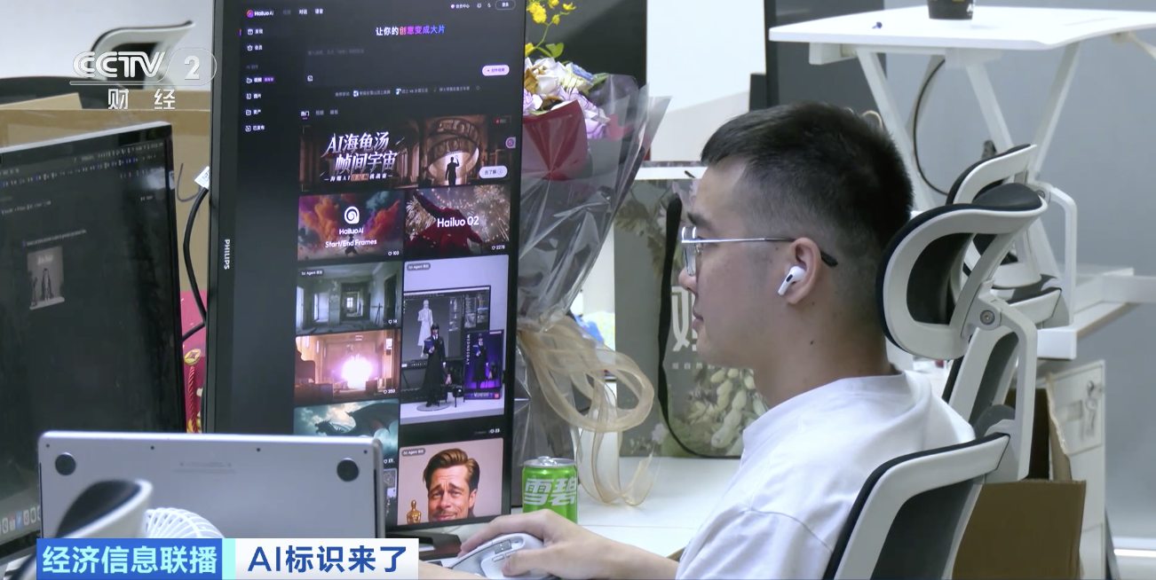 在一家通用人工智能科技公司,研发工程师曹舰航现场演示了平台的AI内容标识全流程。打开创作者后台,当用AI工具生成一段短视频后,视频右下角立即自动出现“AI生成”字样。此外,平台还会在文件代码中嵌入专属“数字水印”,也就是隐示标识,为跨平台监管与溯源提供技术支撑。