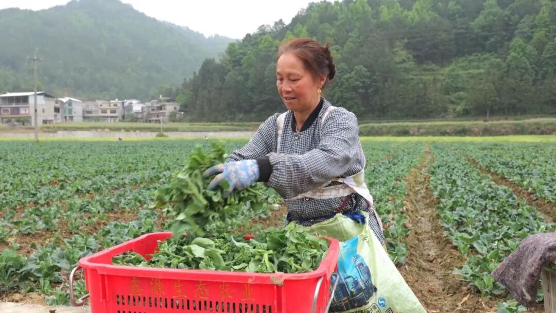 春日的红院坝区,田间绿意盎然,数十名村民正忙着采收芥蓝菜心,五星村村民伍小秀手持工具,穿梭在连片菜田间,熟练地采摘、装箱。自红院坝区全面推行规模化稻菜轮作种植以来,常态化用工岗位持续增加,伍小秀第一时间就近务工,成为基地固定员工。如今她月月有工资、年年有地租,稳稳端起了增收致富的“幸福饭碗”。