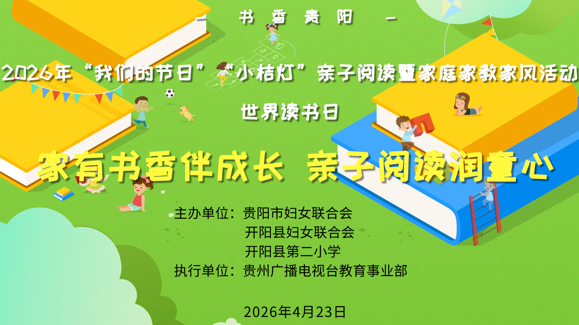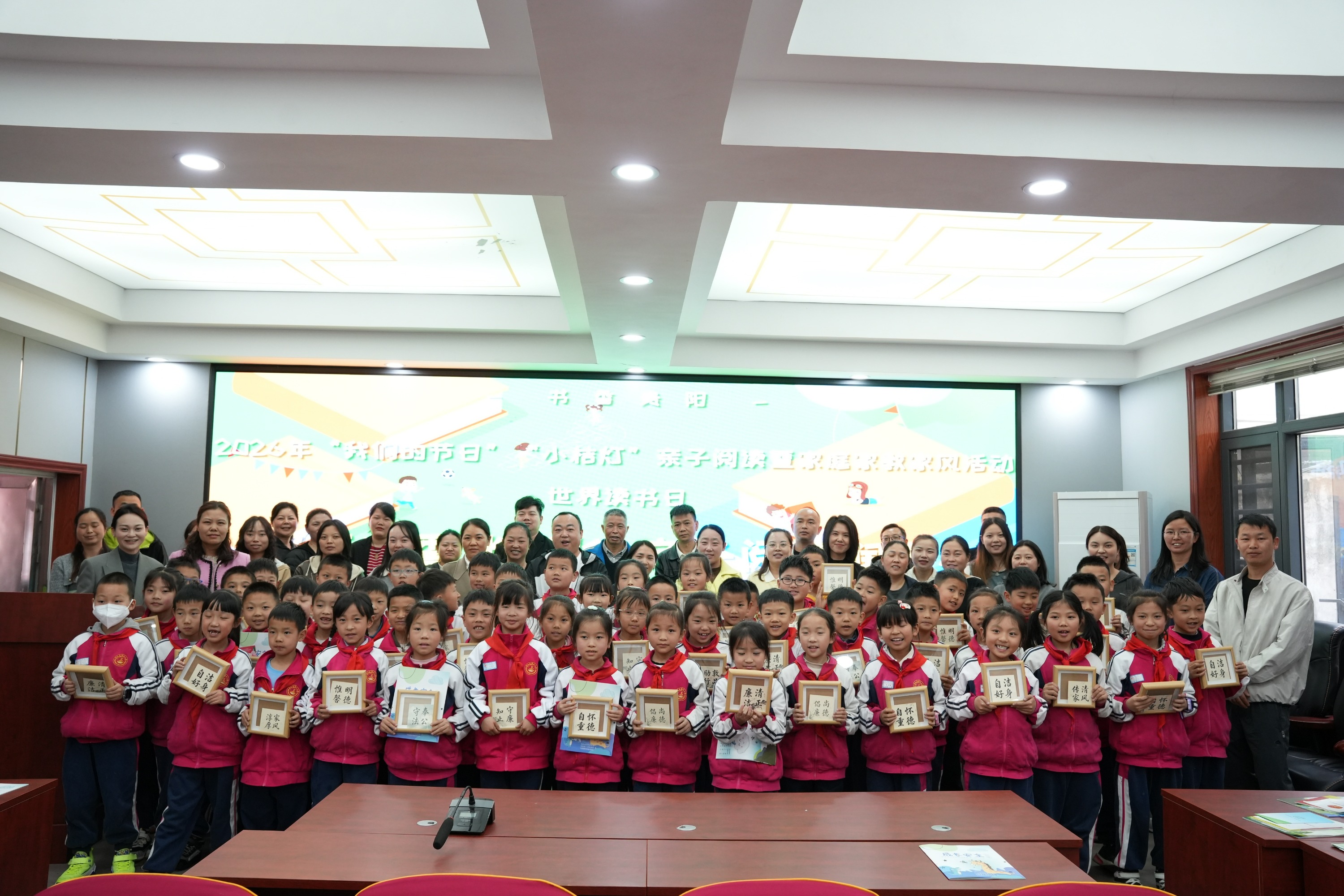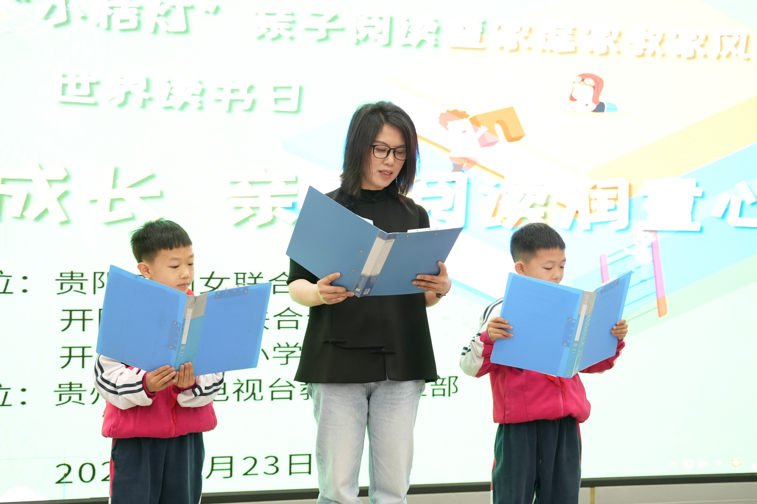 为迎接世界读书日,深化家庭家教家风建设,厚植廉洁文化与红色家风根基,4月23日,由贵阳市妇女联合会、开阳县妇女联合会、开阳县第二小学联合主办,贵州广播电视台教育事业部承办的“我们的节日”“小桔灯”亲子阅读暨家庭家教家风活动在开阳县第二小学顺利举办。此次活动以“家有书香伴成长 亲子阅读润童心”为主题,与现场教师及亲子家庭共品书香韵味,共传优良家风。