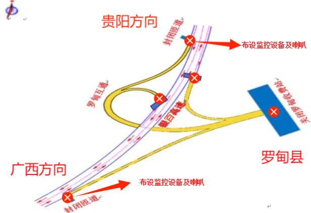 3.广西方向车辆最优通行路线:银百高速——罗甸南收费站通行,封闭后通行距离约减少0.2公里,耗时约增6分钟。