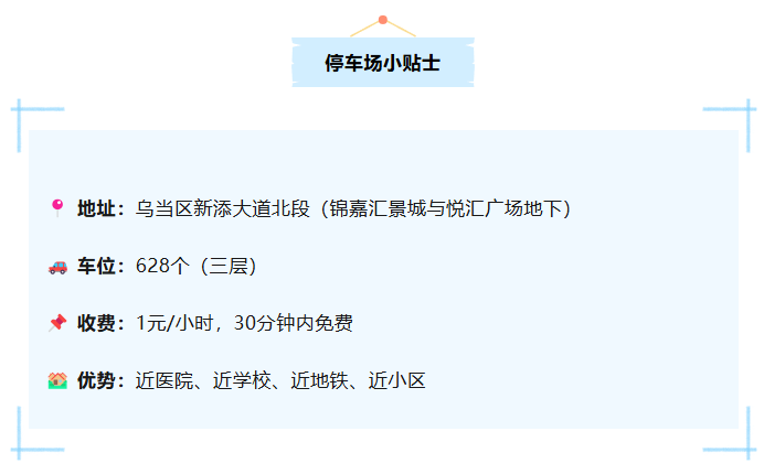 该停车场于2025年11月正式对外开放,一共3层、628个车位,相较于周边原有停车资源实现量级补充。位置也超核心——就在乌当区新添大道北段,紧靠贵州医科大学附属乌当医院、乌当二中,周边多个小区居民也能共享,有效缓解了周边就医、购物及出行停车压力。