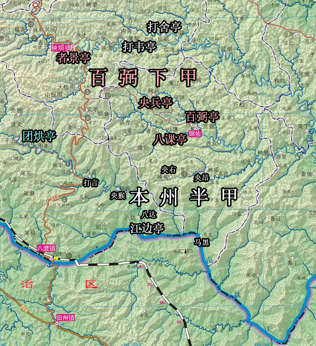 清道光年间,册亨本州半甲凡亭三,为江边亭、打韦亭、打舍亭。江边亭辖央右、八达、打言、央猴、央昂、马黑六寨。