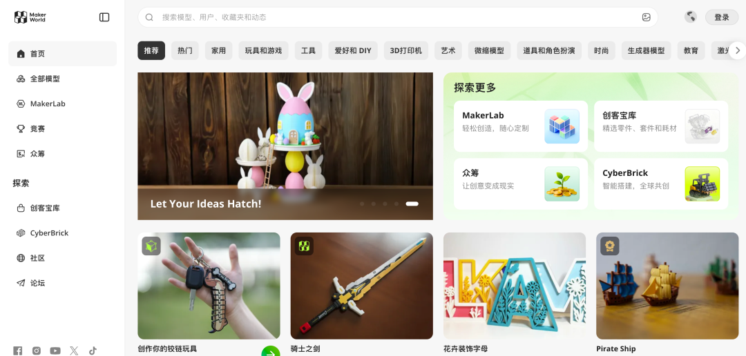 拓竹科技旗下MakerWorld平台可提供模型下载。