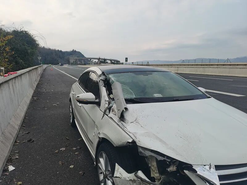 经询问双方驾驶人得知,小轿车驾驶人朱某驾驶车辆从成都经筑蓉高速往金沙方向行驶,15时19分许,他扭头与乘坐在副驾驶的妻子交谈,就在这短短的几秒钟,车辆瞬间偏离车道,向右跑偏撞上旁边车道正常行驶的货车,货车驾驶人钟某通过后视镜看到小轿车冲了过来,准备变道避让,但还是来不及,被撞停于另一车道上,幸亏所有人都全程系好安全带,并无大碍。