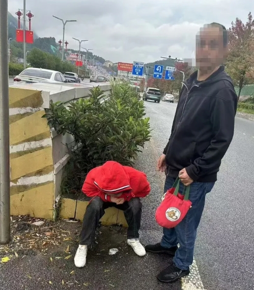 近日,贵阳交警经开区分局民警在花冠路路段巡逻时,发现一名女子蹲在道路中间,表情痛苦、呕吐不止,民警见状立即上前询问情况。