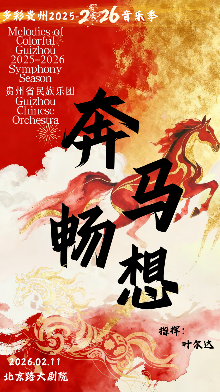 2月11日19:30贵阳市北京路大剧院,贵州省民族乐团新春民族音乐会《奔马畅想》特别邀请到马头琴演奏家孟克、苏尔格,火不思演奏家乌雅汉,与贵州民族乐器的碰撞中共同构建层次丰富、刚柔并济的音乐盛宴。