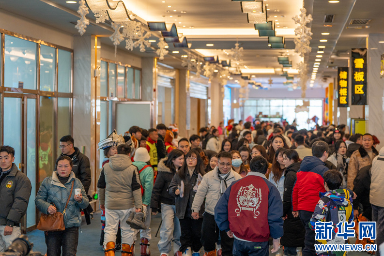 1月10日,贵州省六盘水市玉舍雪山滑雪场人流熙熙攘攘。