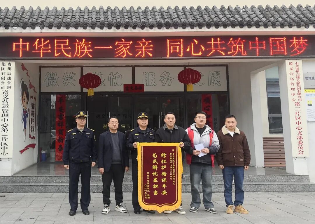 近日,贵州高速集团遵义营运中心第二片区中心收到汇川区高桥街道高石社区赠送锦旗,感谢海龙屯道路保畅(养护)大队党员先锋队主动治理安全风险,守护群众出行安全。